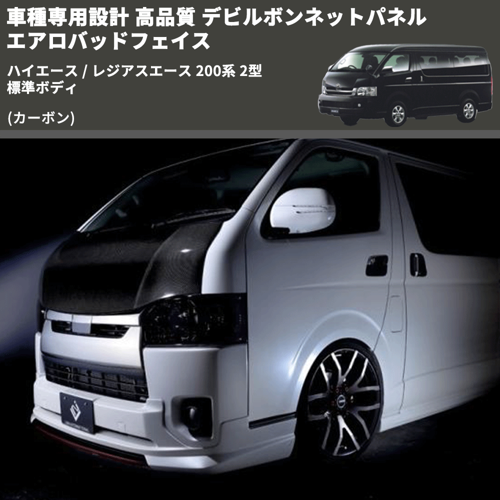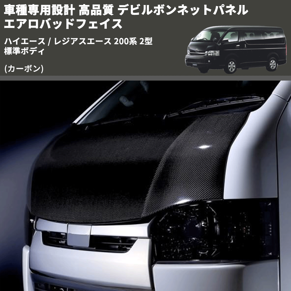 (カーボン) 車種専用設計 高品質 デビルボンネットパネル エアロバッドフェイス ハイエース / レジアスエース 200系 2型 標準ボディ