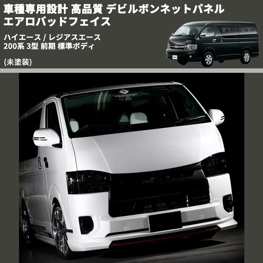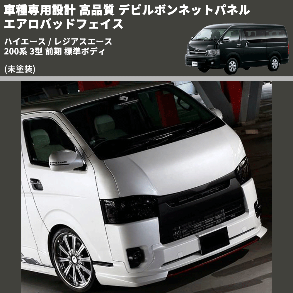 (未塗装) 車種専用設計 高品質 デビルボンネットパネル エアロバッドフェイス ハイエース / レジアスエース 200系 3型 前期 標準ボディ