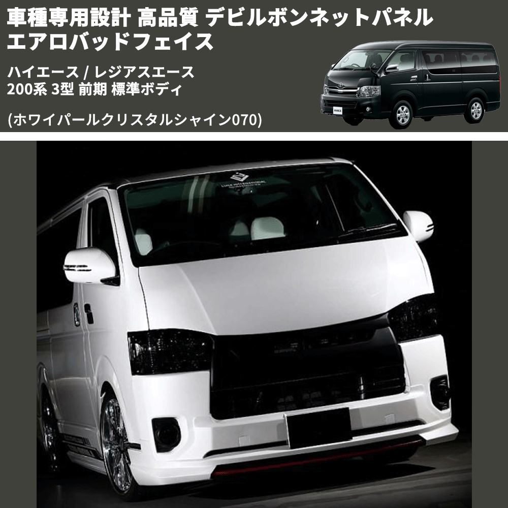 (ホワイパールクリスタルシャイン070) 車種専用設計 デビルボンネットパネル エアロバッドフェイス ハイエース / レジアスエース 200系 3型 前期 標準ボディ