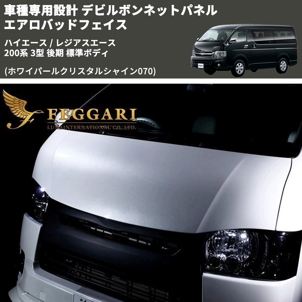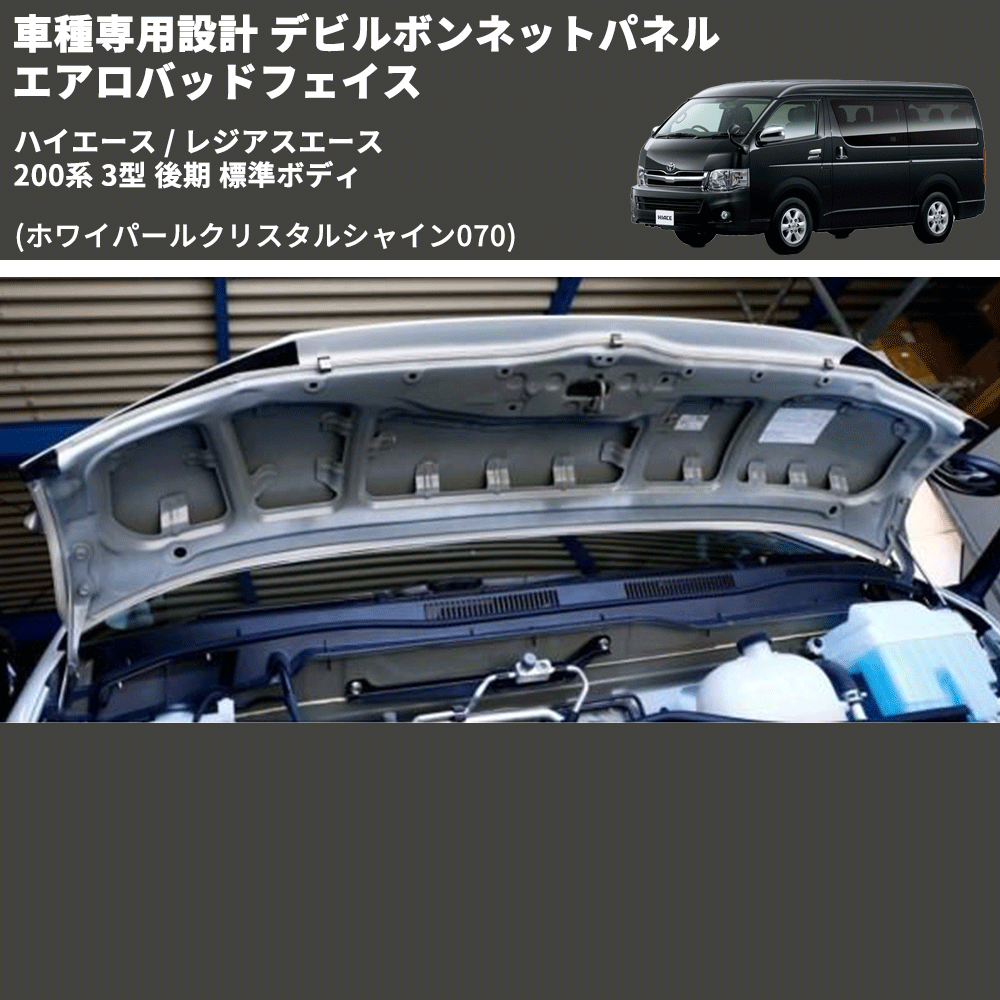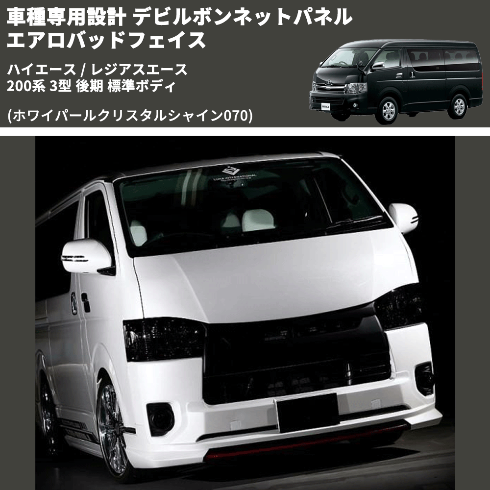 (ホワイパールクリスタルシャイン070) 車種専用設計 デビルボンネットパネル エアロバッドフェイス ハイエース / レジアスエース 200系 3型 後期 標準ボディ