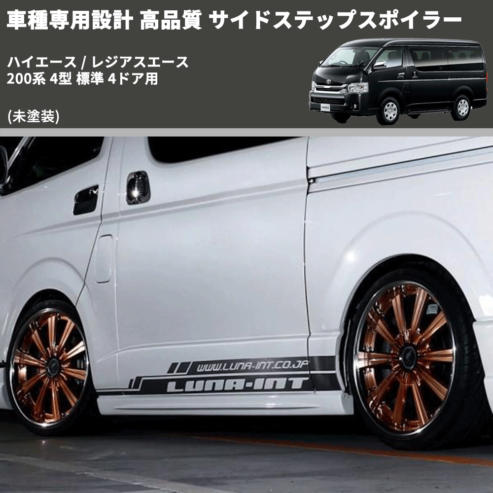 (未塗装) 車種専用設計 高品質 サイドステップスポイラー ハイエース / レジアスエース 200系 4型 標準 4ドア用