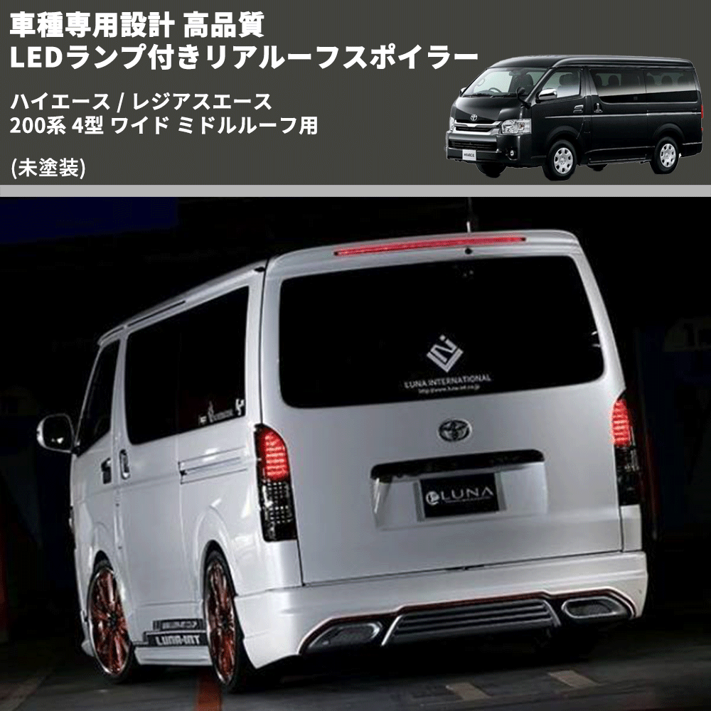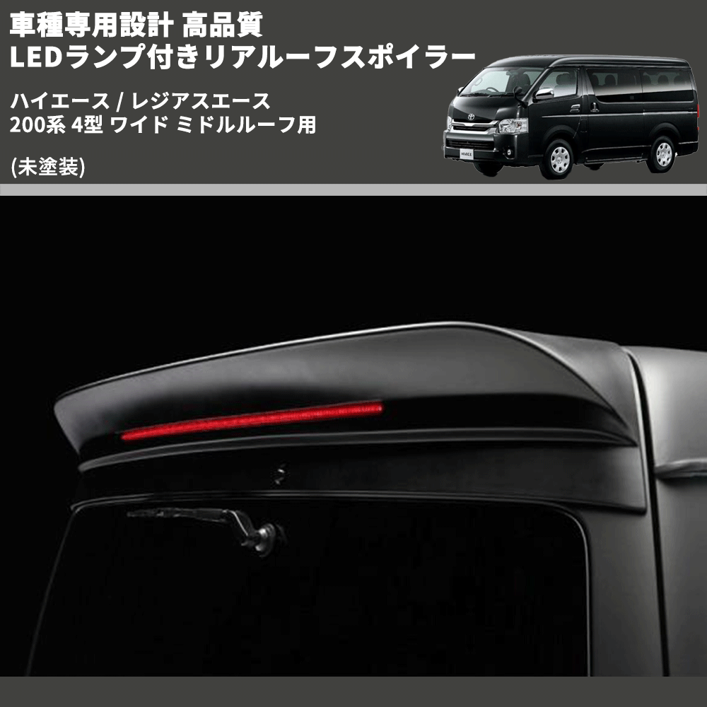 (未塗装) 車種専用設計 高品質 LEDランプ付きリアルーフスポイラー ハイエース / レジアスエース 200系 4型 ワイド ミドルルーフ用