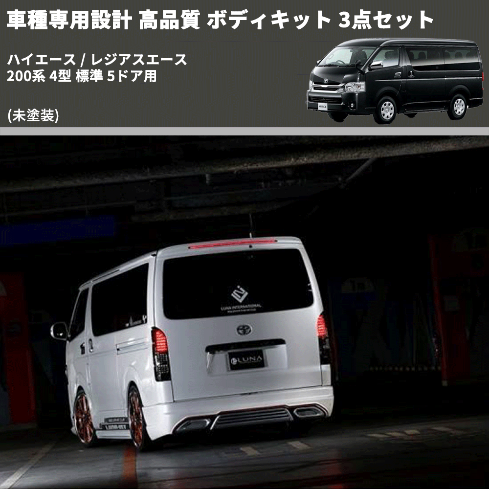 (未塗装) 車種専用設計 高品質 ボディキット 3点セット ハイエース / レジアスエース 200系 4型 標準 5ドア用