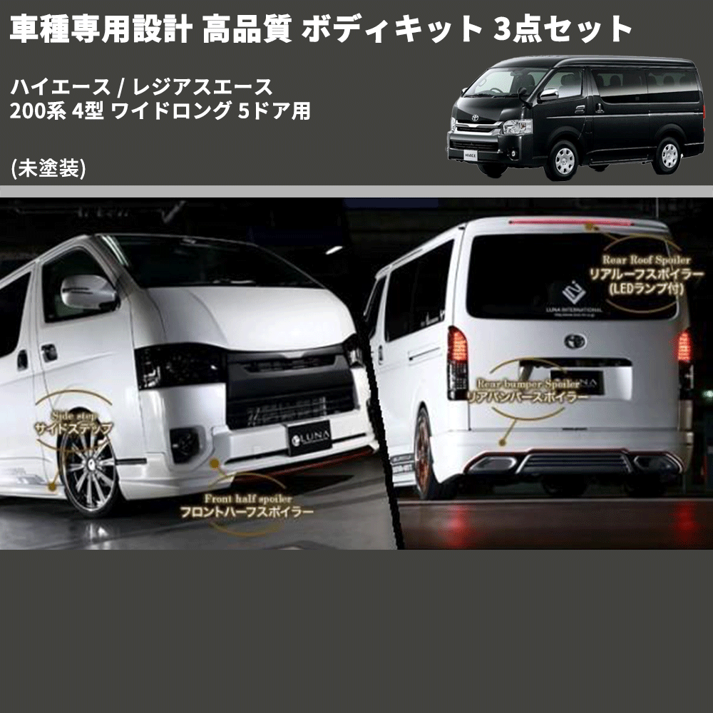 (未塗装) 車種専用設計 高品質 ボディキット 3点セット ハイエース / レジアスエース 200系 4型 ワイドロング 5ドア用