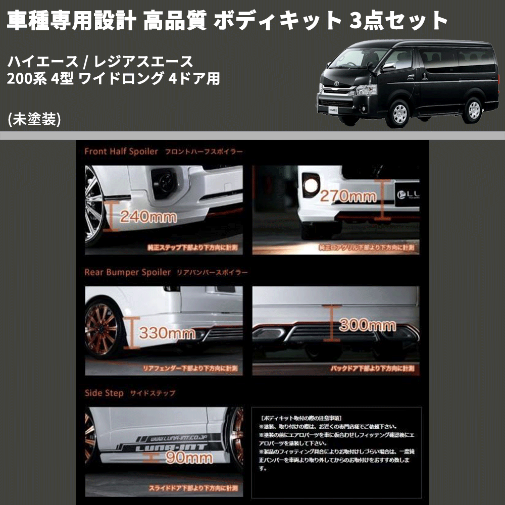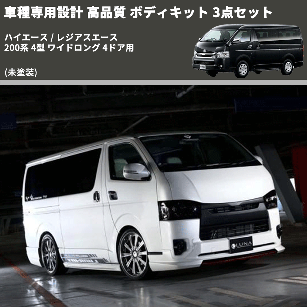 (未塗装) 車種専用設計 高品質 ボディキット 3点セット ハイエース / レジアスエース 200系 4型 ワイドロング 4ドア用