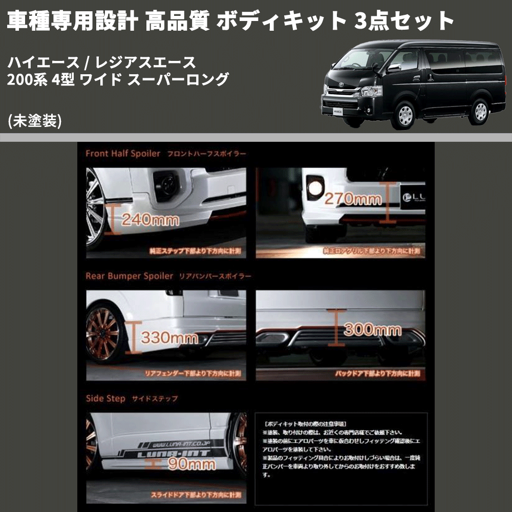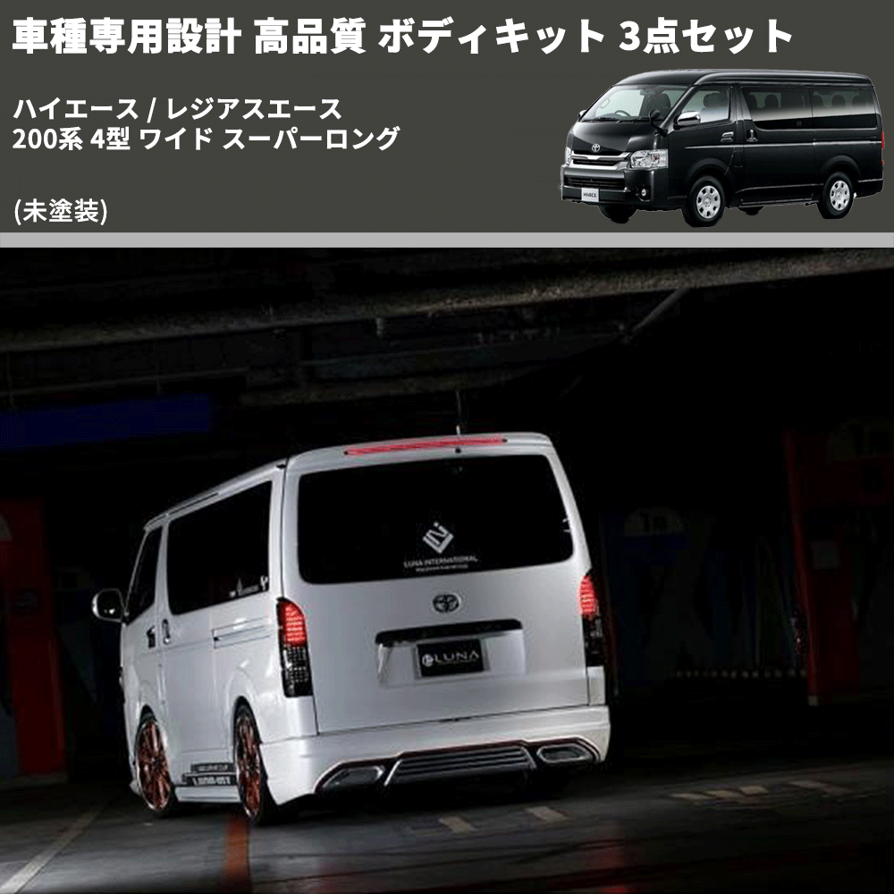 (未塗装) 車種専用設計 高品質 ボディキット 3点セット ハイエース / レジアスエース 200系 4型 ワイド スーパーロング