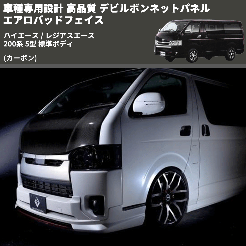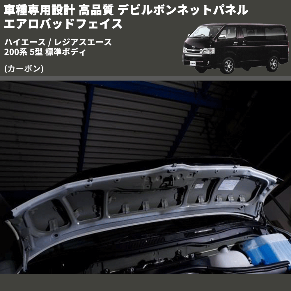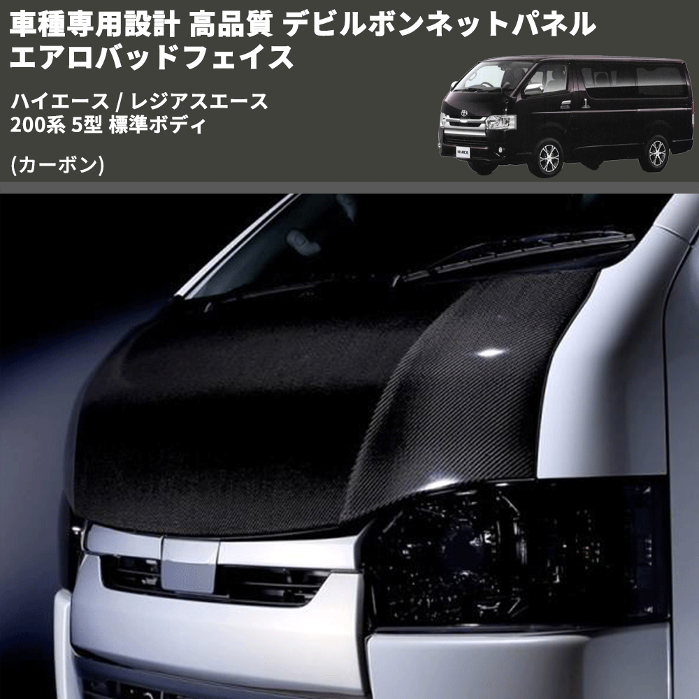 (カーボン) 車種専用設計 高品質 デビルボンネットパネル エアロバッドフェイス ハイエース / レジアスエース 200系 5型 標準ボディ