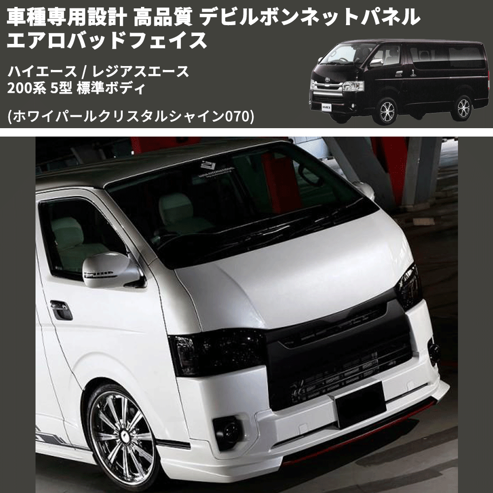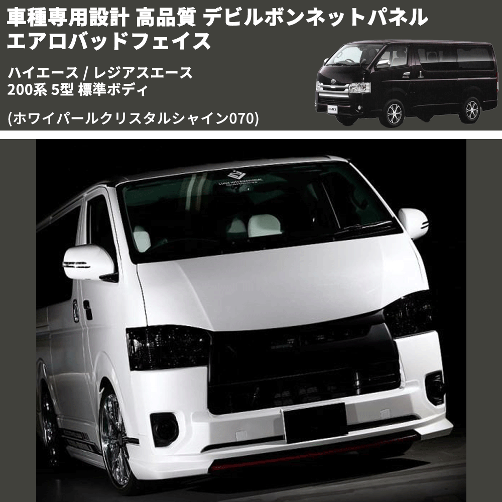 (ホワイパールクリスタルシャイン070) 車種専用設計 高品質 デビルボンネットパネル エアロバッドフェイス ハイエース / レジアスエース 200系 5型 標準ボディ
