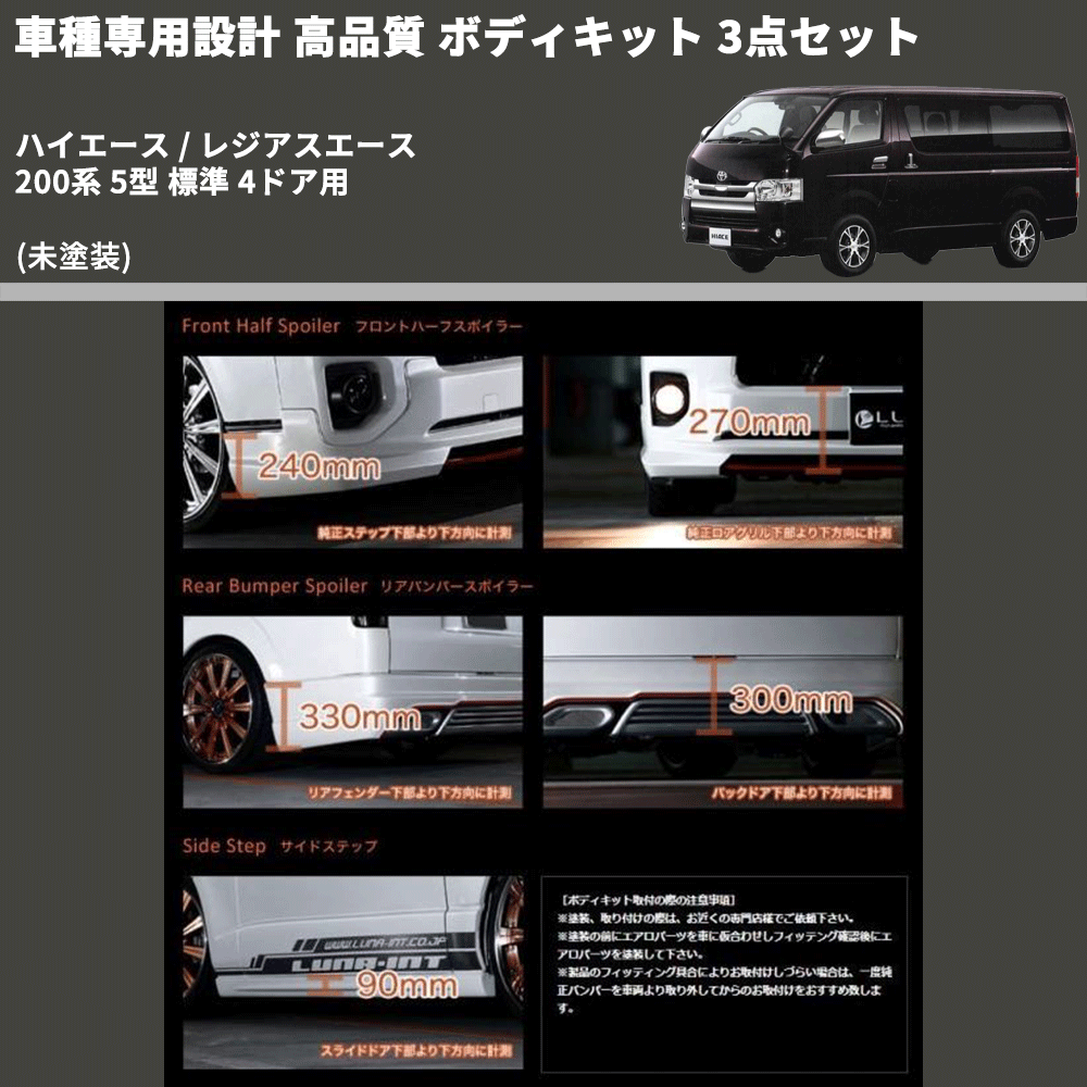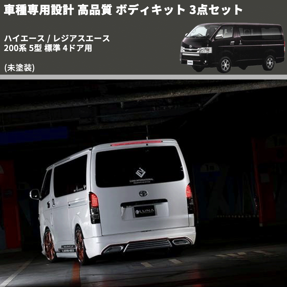 (未塗装) 車種専用設計 高品質 ボディキット 3点セット ハイエース / レジアスエース 200系 5型 標準 4ドア用