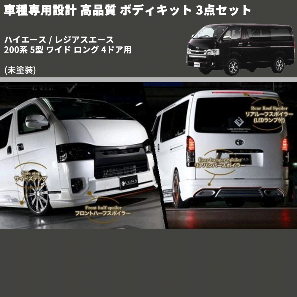 (未塗装) 車種専用設計 高品質 ボディキット 3点セット ハイエース / レジアスエース 200系 5型 ワイド ロング 4ドア用