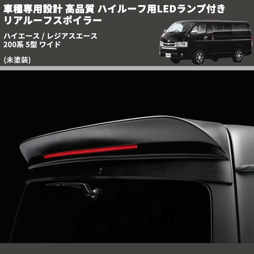 (未塗装) 車種専用設計 高品質 ハイルーフ用LEDランプ付き リアルーフスポイラー ハイエース / レジアスエース 200系 5型 ワイド