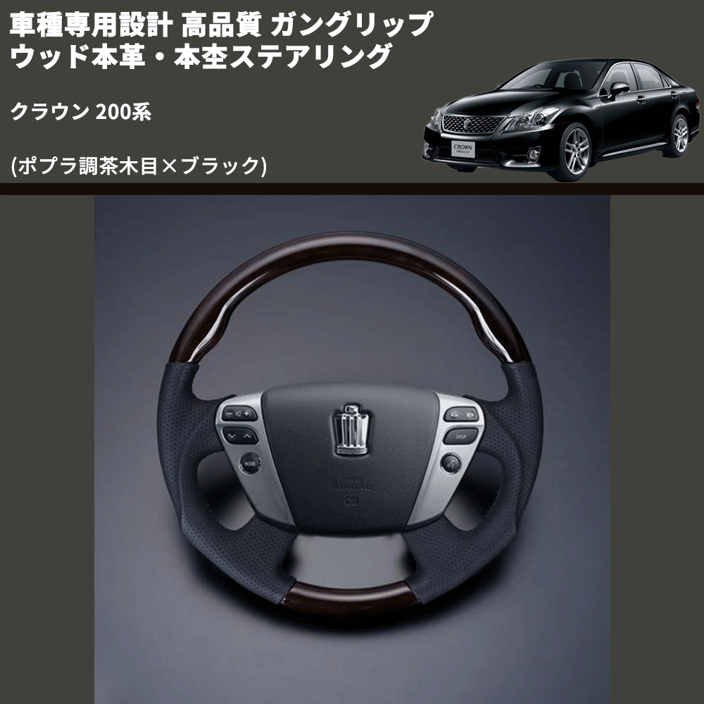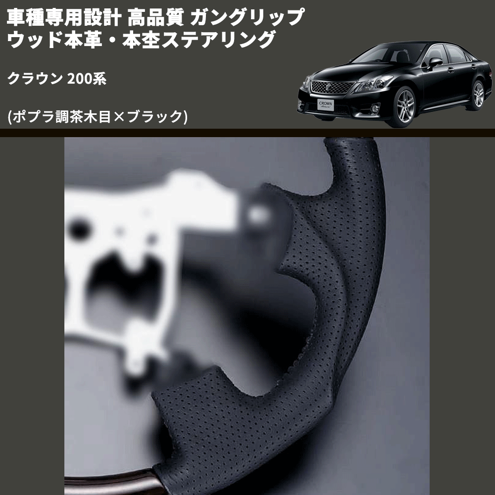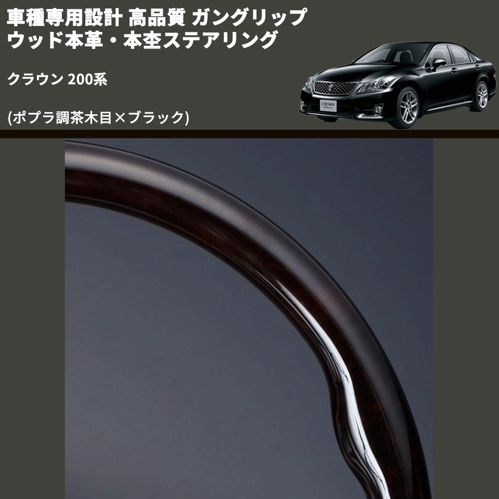 (ポプラ調茶木目×ブラック) ガングリップ ウッド本革・本杢ステアリング クラウン 200系 FEGGARI LD202-003 専用設計 高品質