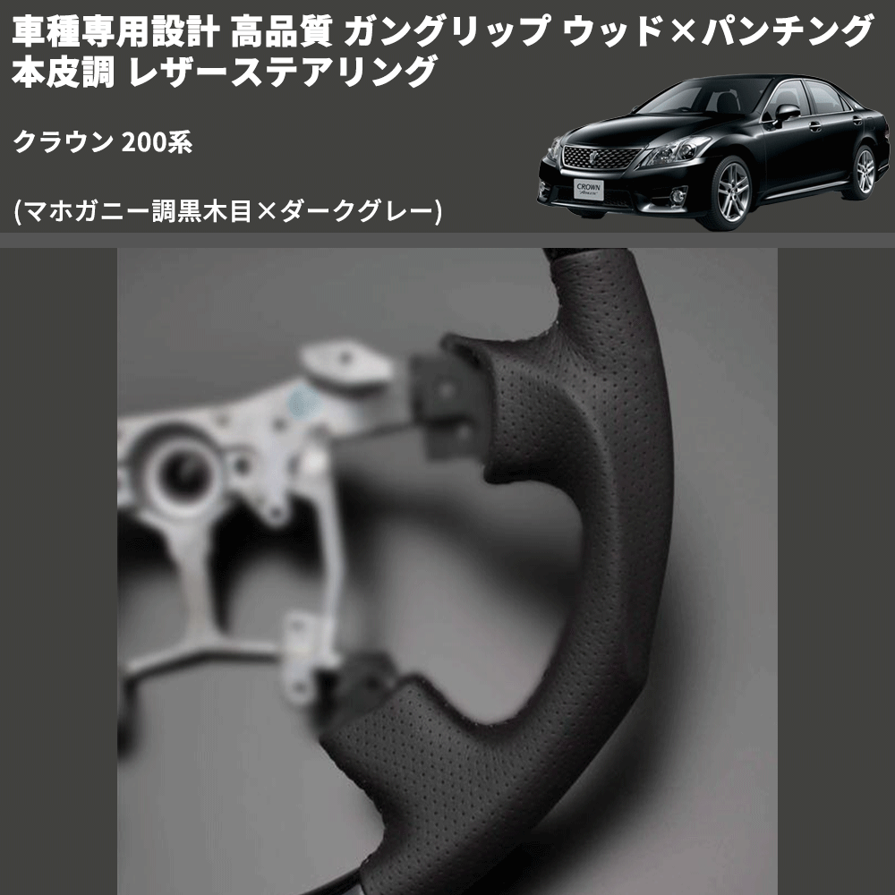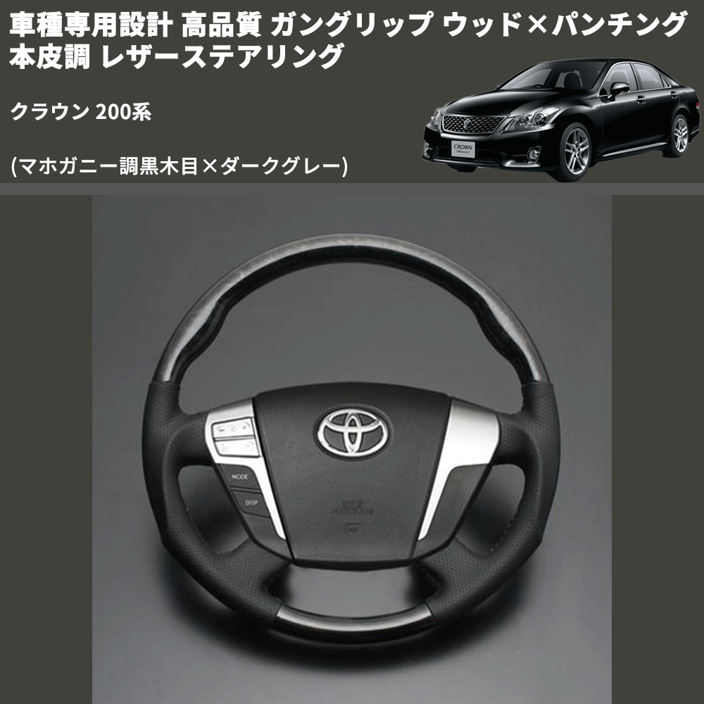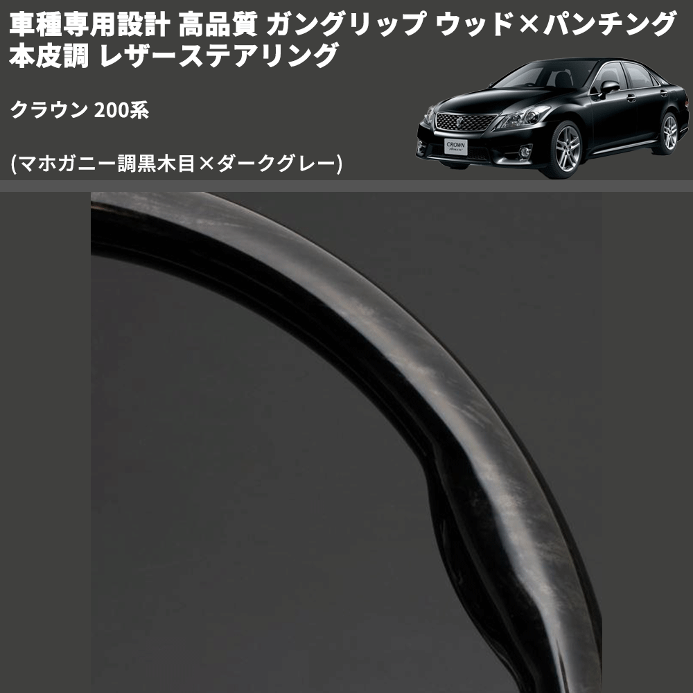 (マホガニー調黒木目×ダークグレー) ガングリップ ウッド×パンチング 本皮調 レザーステアリング クラウン 200系 FEGGARI LS124-003 専用設計 高品質
