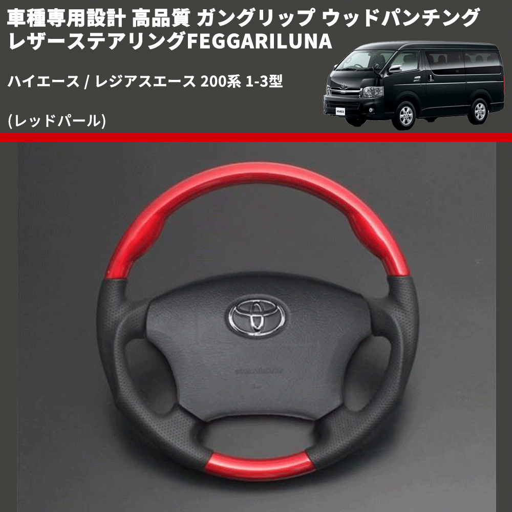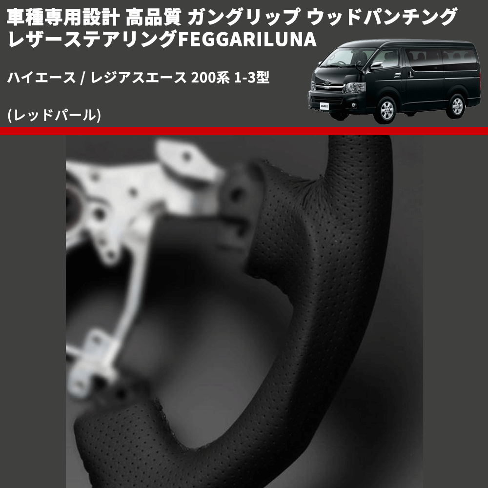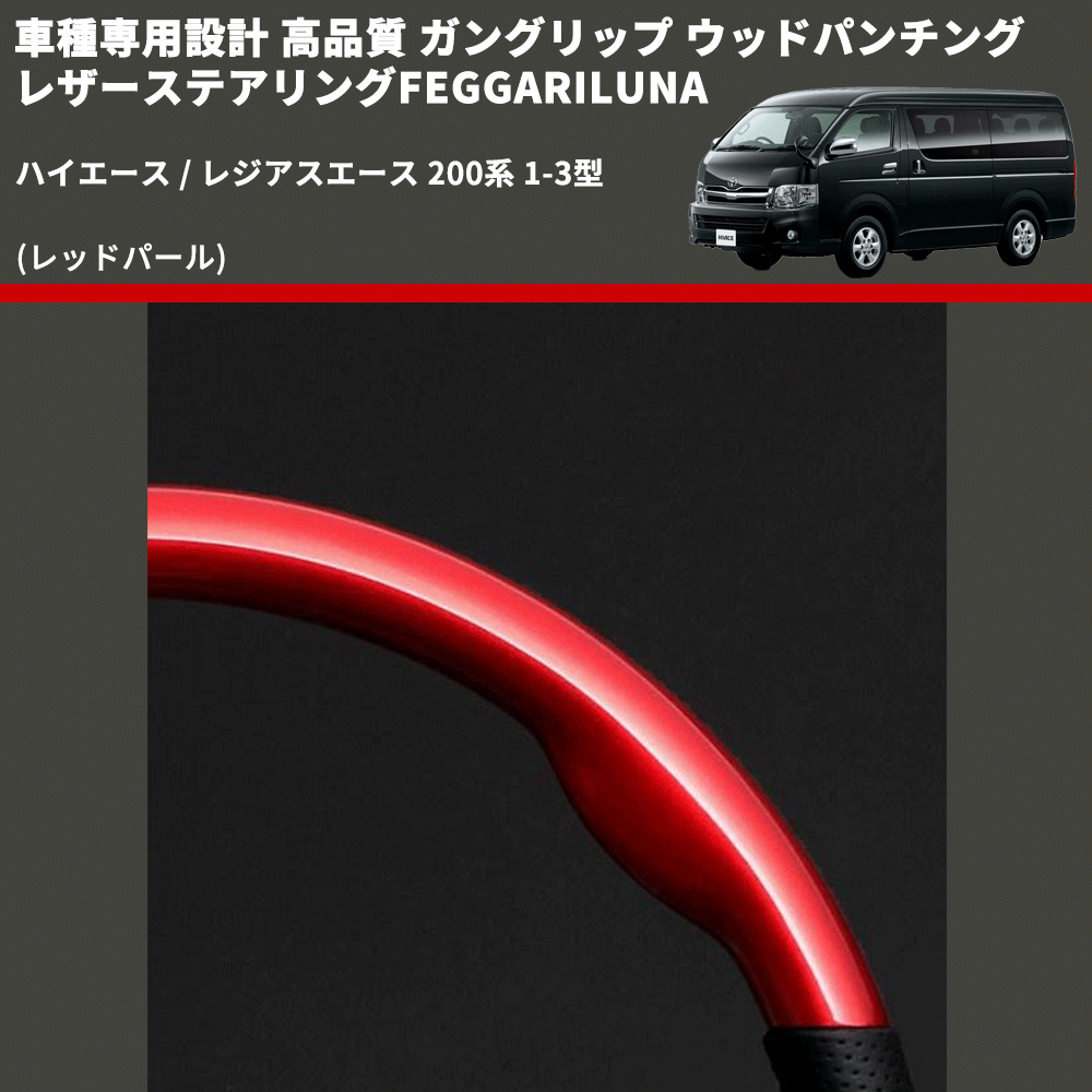 (レッドパール) ガングリップ ウッド×パンチング 本皮調 レザーステアリング ハイエース / レジアスエース 200系 1-3型 FEGGARI LSH3-RED-001 専用設計