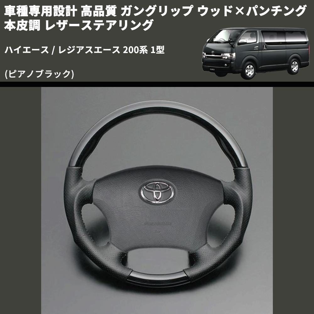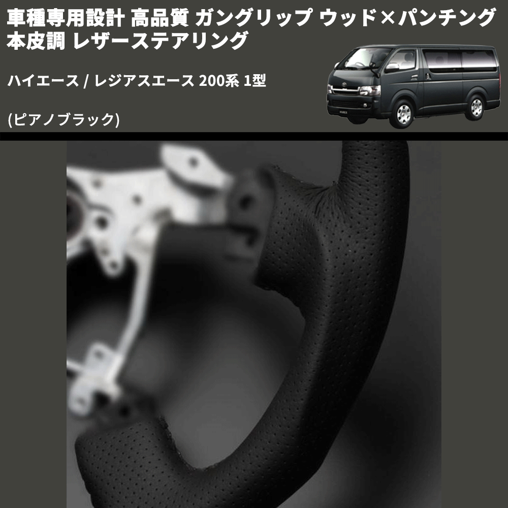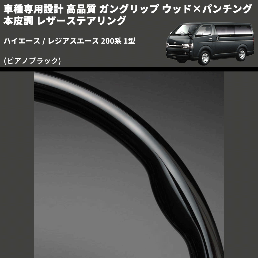 (ピアノブラック) ガングリップ ウッド×パンチング 本皮調 レザーステアリング ハイエース / レジアスエース 200系 1型 FEGGARI LS118-001 専用設計 高品質