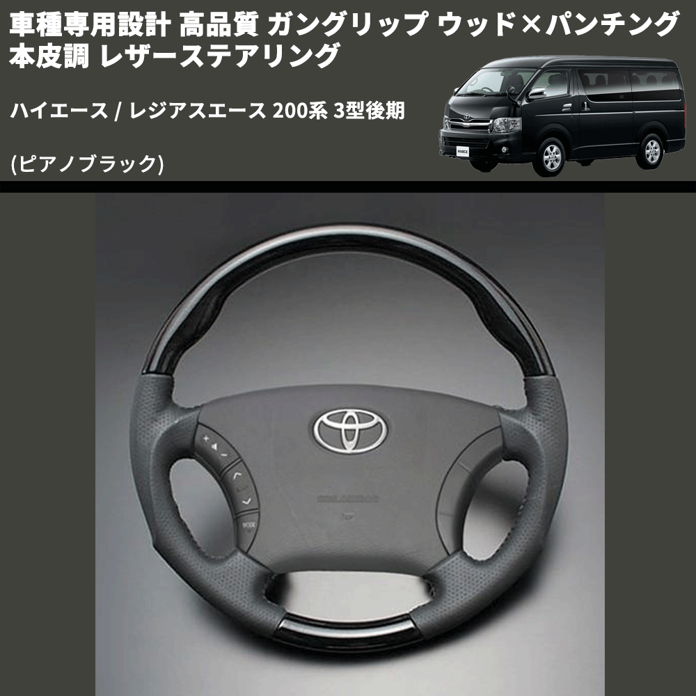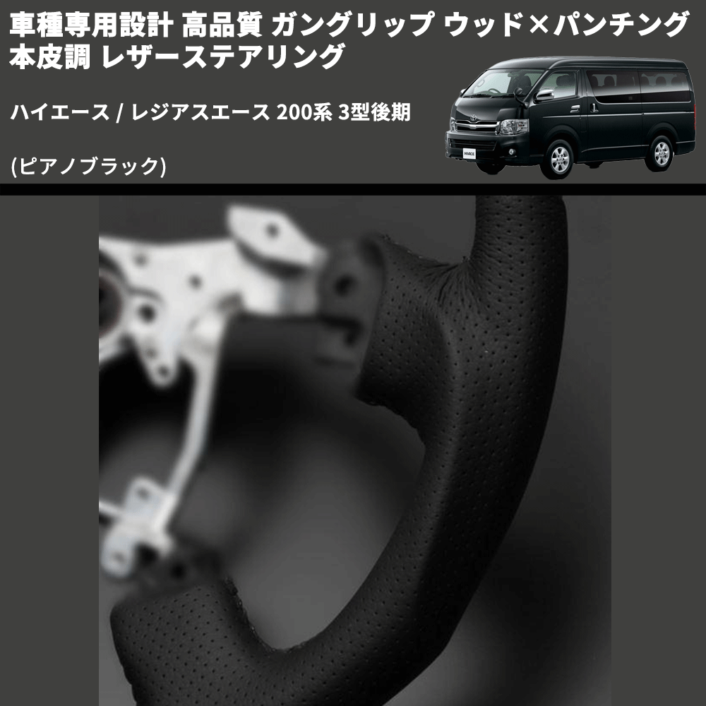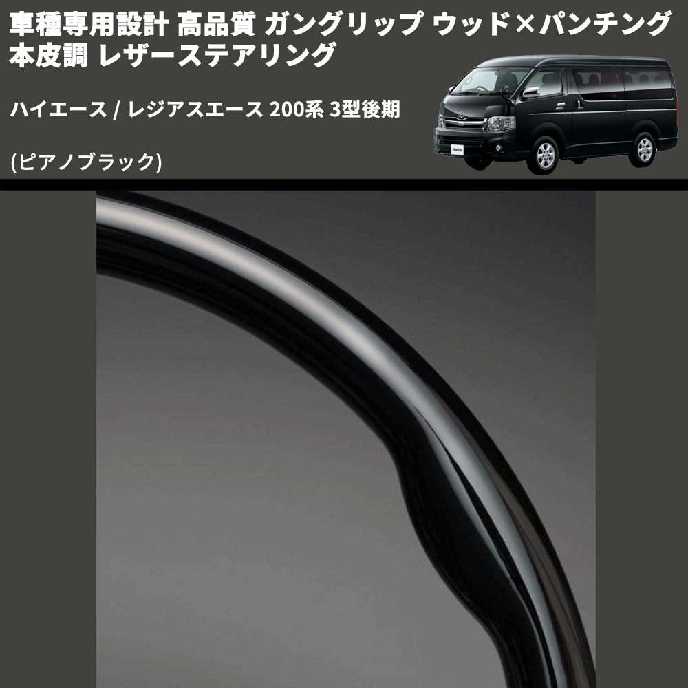 (ピアノブラック) ガングリップ ウッド×パンチング 本皮調 レザーステアリング ハイエース / レジアスエース 200系 3型後期 FEGGARI LS118-008 専用設計
