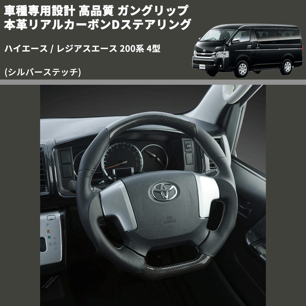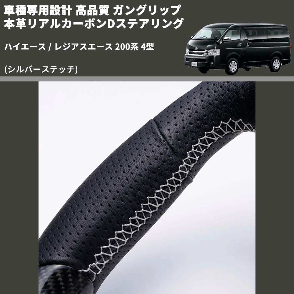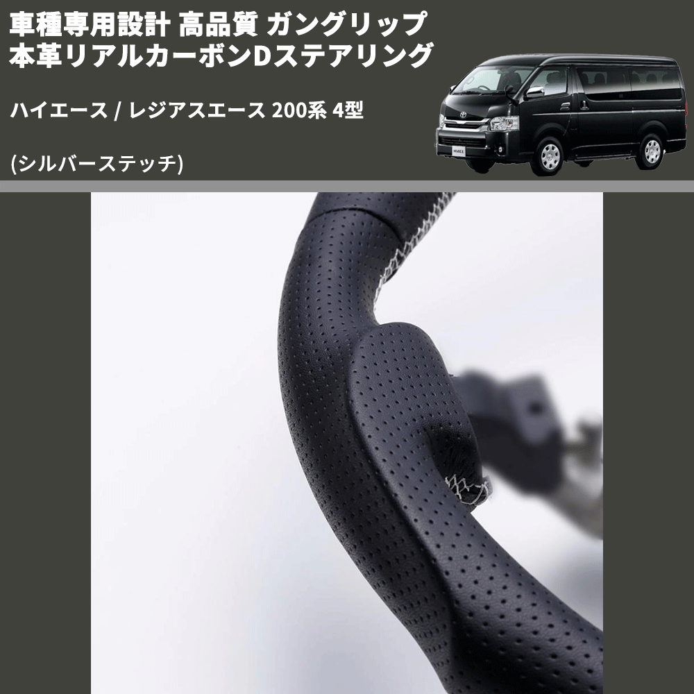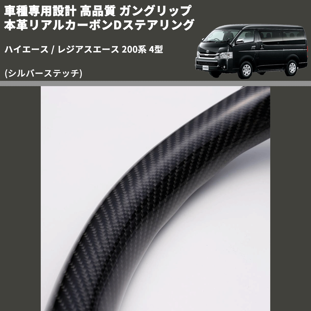 (シルバーステッチ) ガングリップ 本革リアルカーボンDステアリング ハイエース / レジアスエース 200系 4型 FEGGARI FSD200CA-SS-001 専用設計 高品質