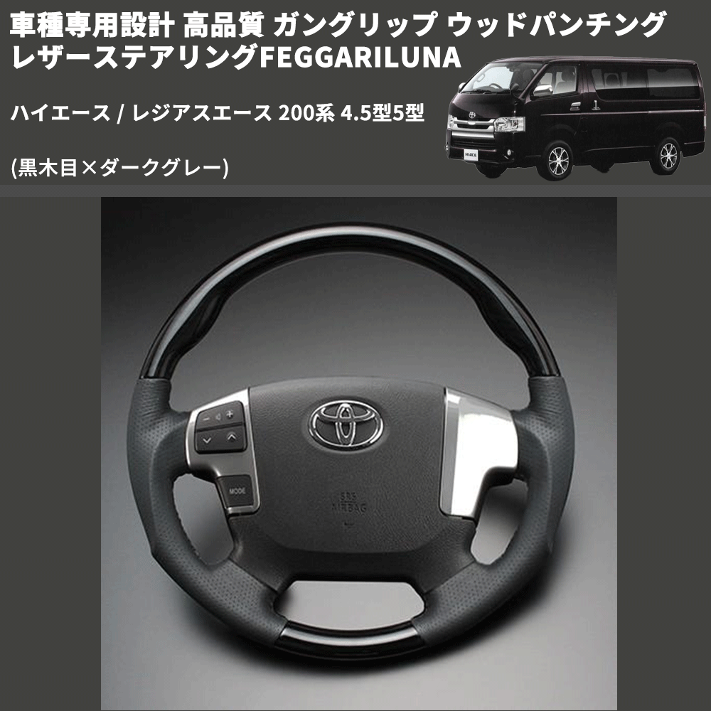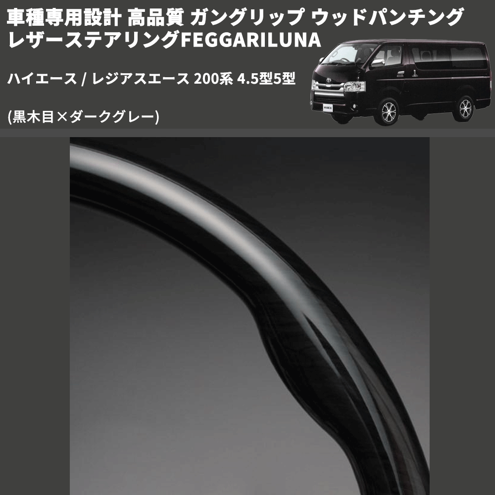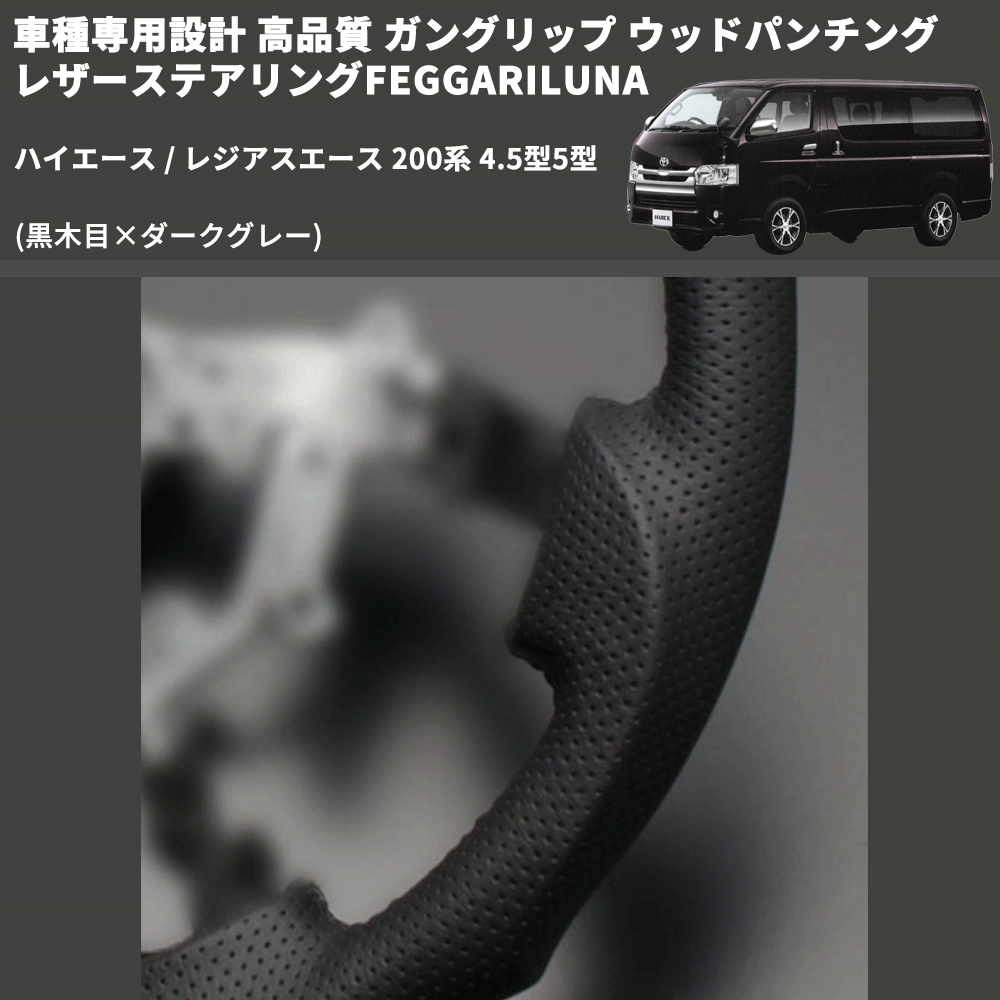 (黒木目×ダークグレー) ガングリップ ウッドパンチングレザーステアリングFEGGARILUNA ハイエース / レジアスエース 200系 4.5型5型 FEGGARI LS143-002