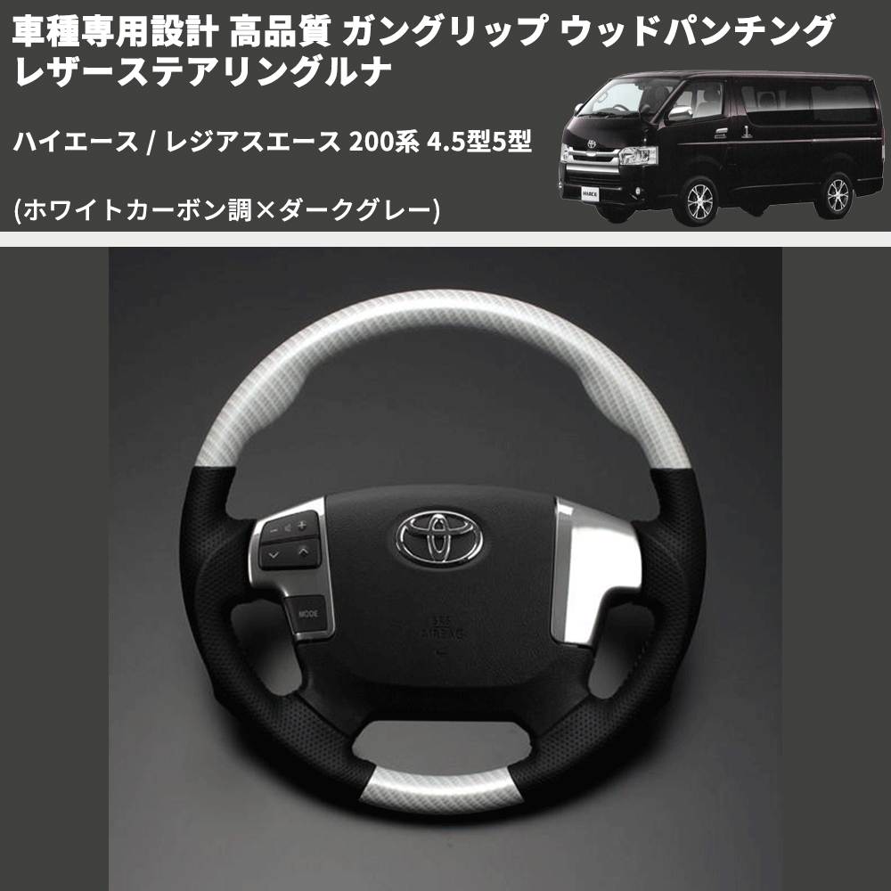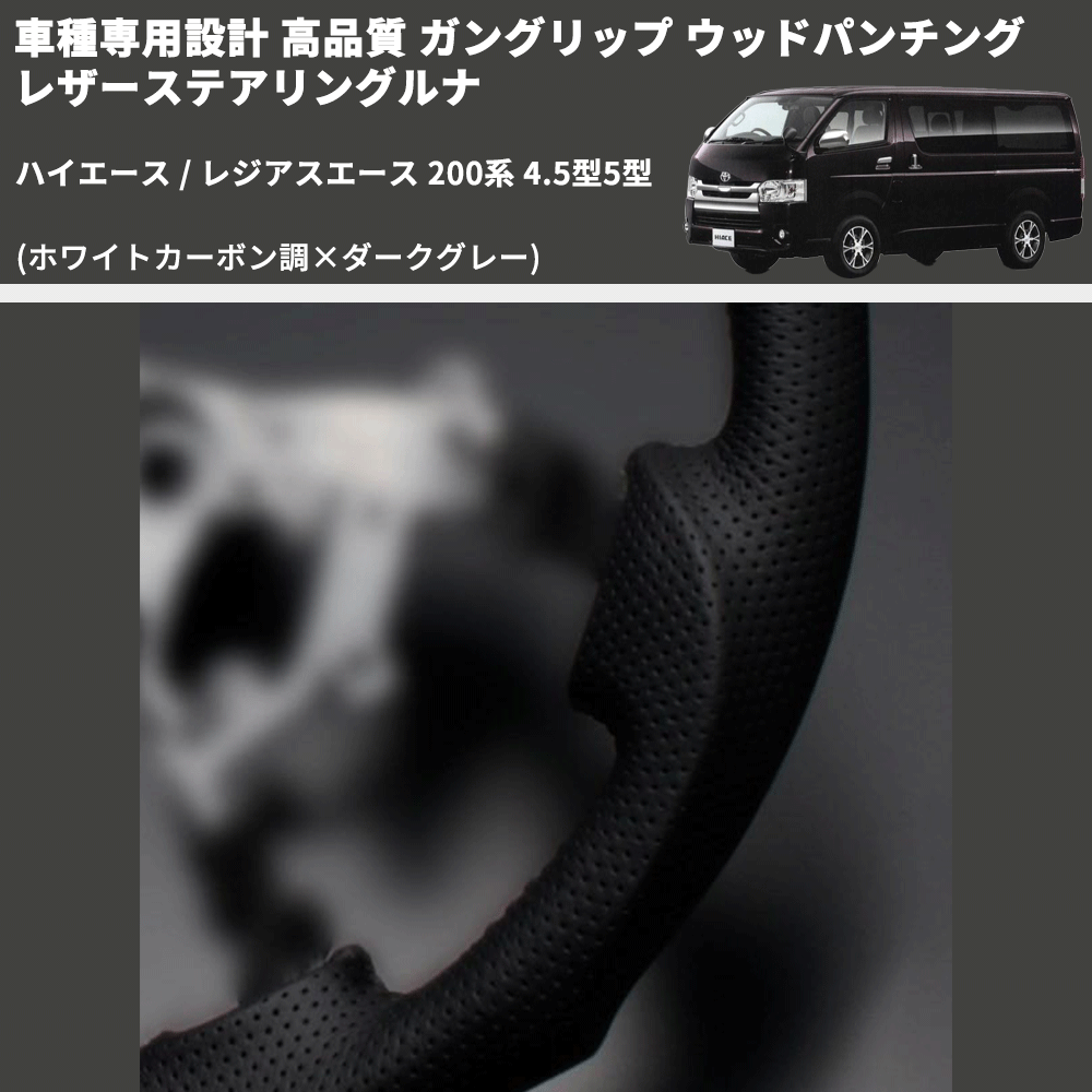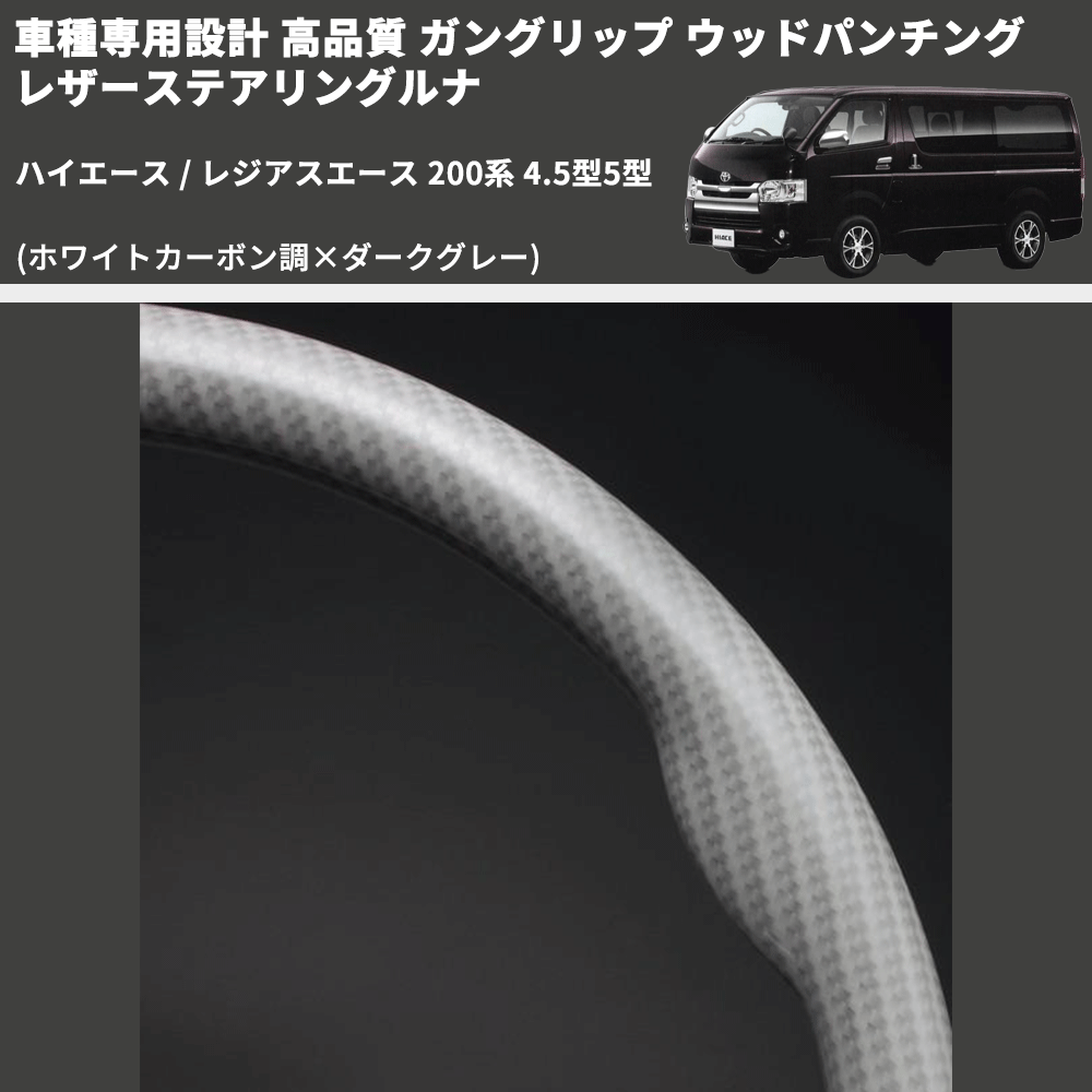 (ホワイトカーボン調×ダークグレー) ガングリップ ウッドパンチングレザーステアリングルナ ハイエース 200系 4.5型5型 FEGGARI LS143-257-002