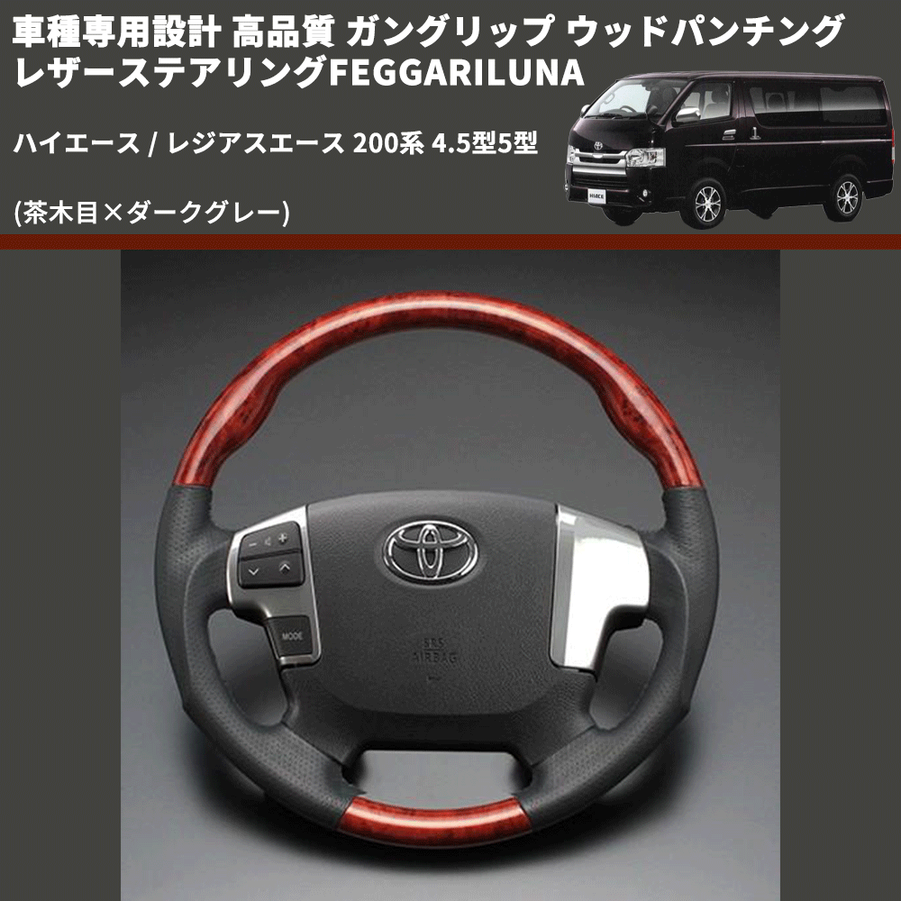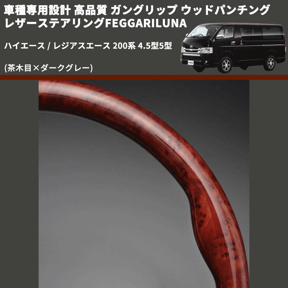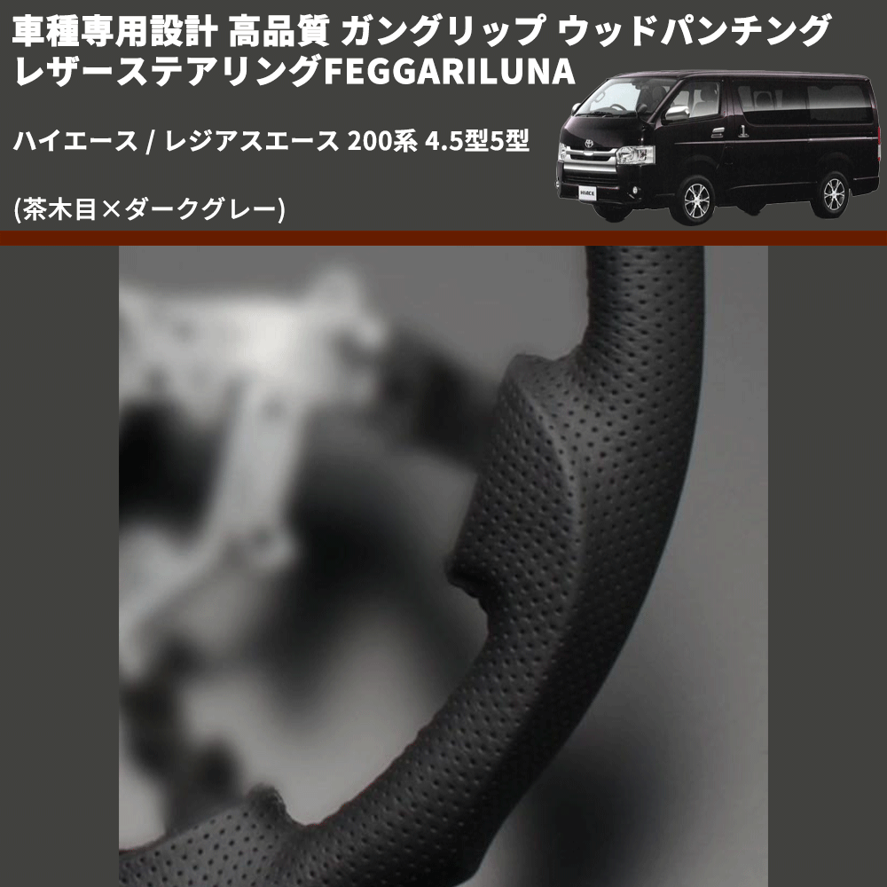 (茶木目×ダークグレー) ガングリップ ウッドパンチングレザーステアリングFEGGARILUNA ハイエース / レジアスエース 200系 4.5型5型 FEGGARI LS144-002