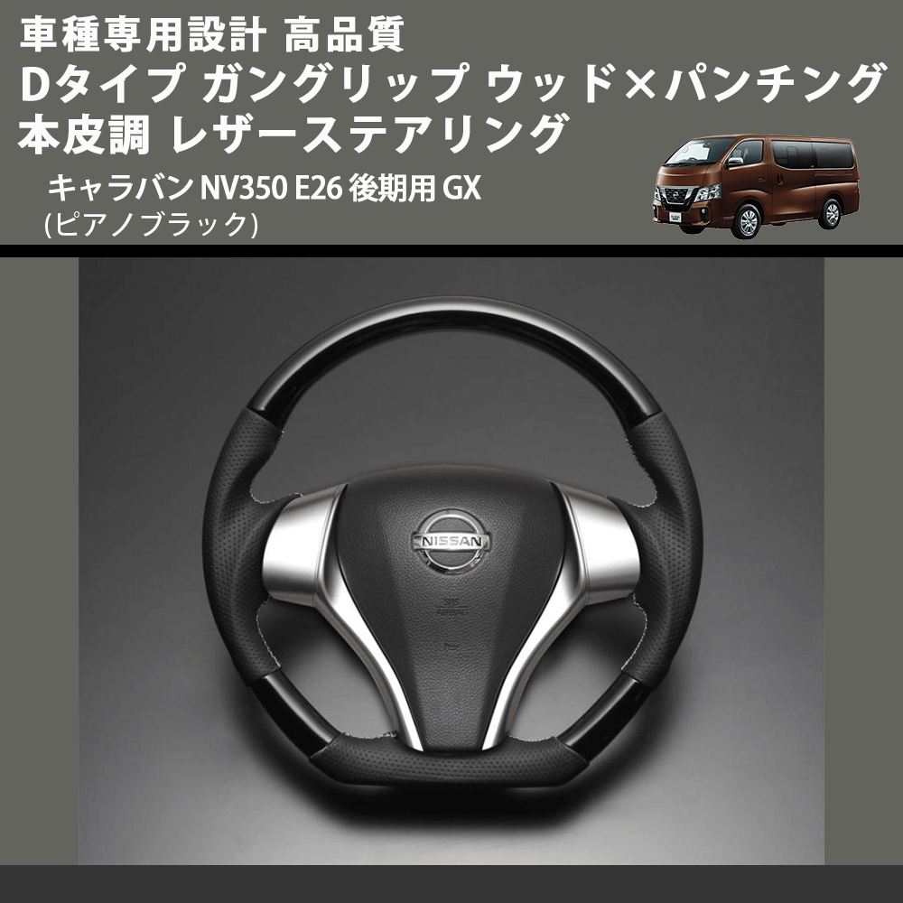 (ピアノブラック) Dタイプ ガングリップ ウッド×パンチング 本皮調 レザーステアリング キャラバン NV350 E26 後期用 GX FEGGARI LS26KDPBST