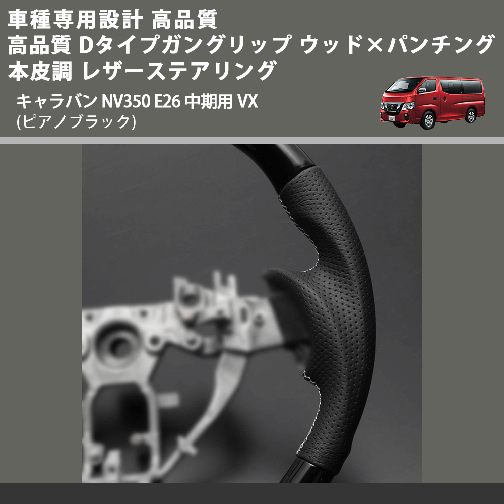 (ピアノブラック) Dタイプ ガングリップ ウッド×パンチング 本皮調 レザーステアリング キャラバン NV350 E26 中期用 VX FEGGARI LS26KDPBST-001