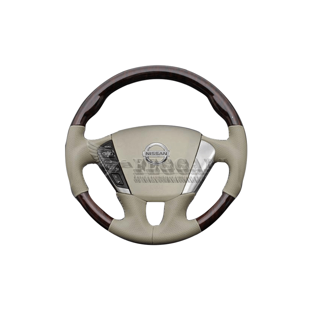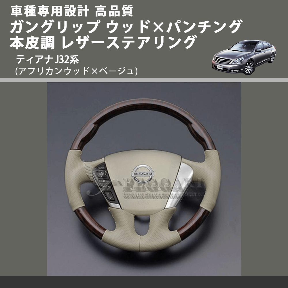 (アフリカンウッド×ベージュ) ガングリップ ウッド×パンチング 本皮調 レザーステアリング ティアナ J32系 FEGGARI LS102-002 車種専用設計 高品質