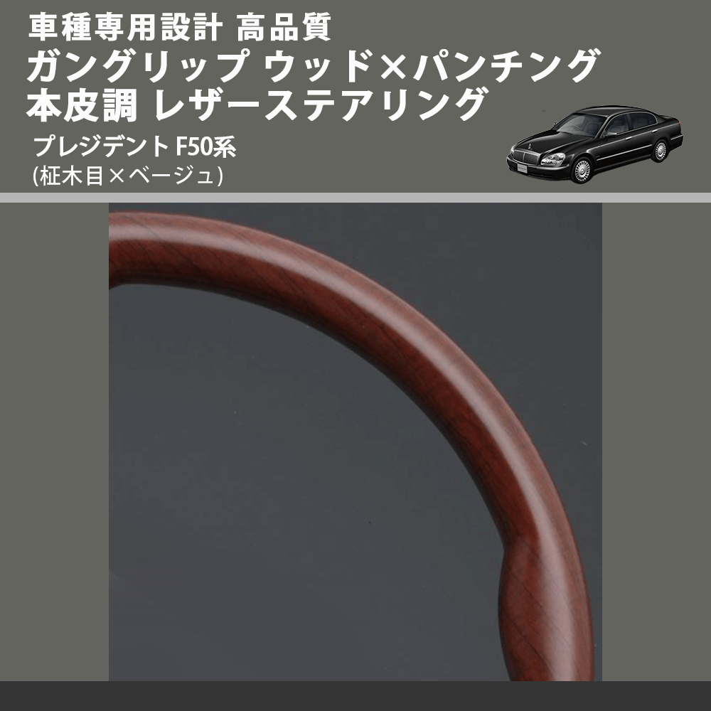 (柾木目×ベージュ) ガングリップ ウッド×パンチング 本皮調 レザーステアリング プレジデント F50系 FEGGARI LS03AN-005 車種専用設計 高品質