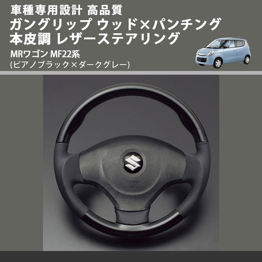 (ピアノブラック×ダークグレー) ガングリップ ウッド×パンチング 本皮調 レザーステアリング MRワゴン MF22系 FEGGARI LS48-001 車種専用設計 高品質