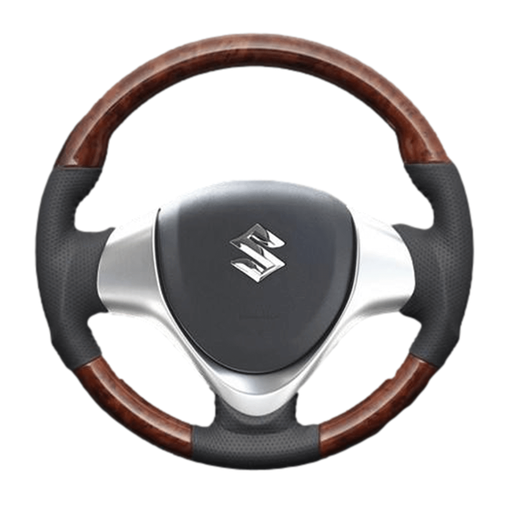 (茶木目×ダークグレー) ガングリップ ウッド×パンチング 本皮調 レザーステアリング ハスラー MR31/41系 FEGGARI LS136-003