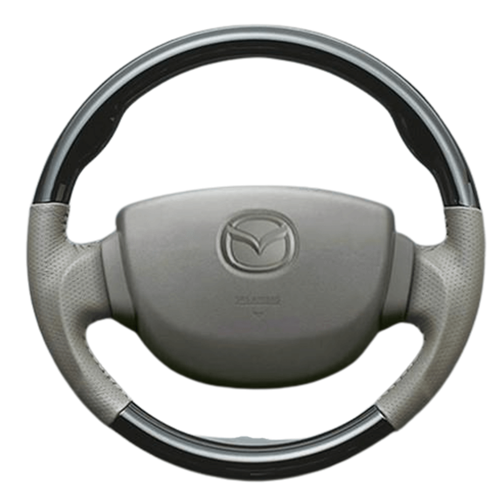 (ピアノブラック×ベージュ) ガングリップ ウッド×パンチング 本皮調 レザーステアリング スクラムバン DG64V系 FEGGARI LS76-007