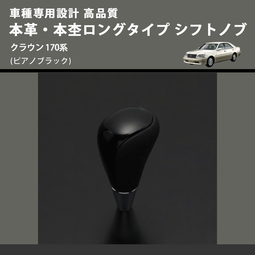(ピアノブラック) 本革・本杢ロングタイプ シフトノブ クラウン 170系 FEGGARI SDL004-026