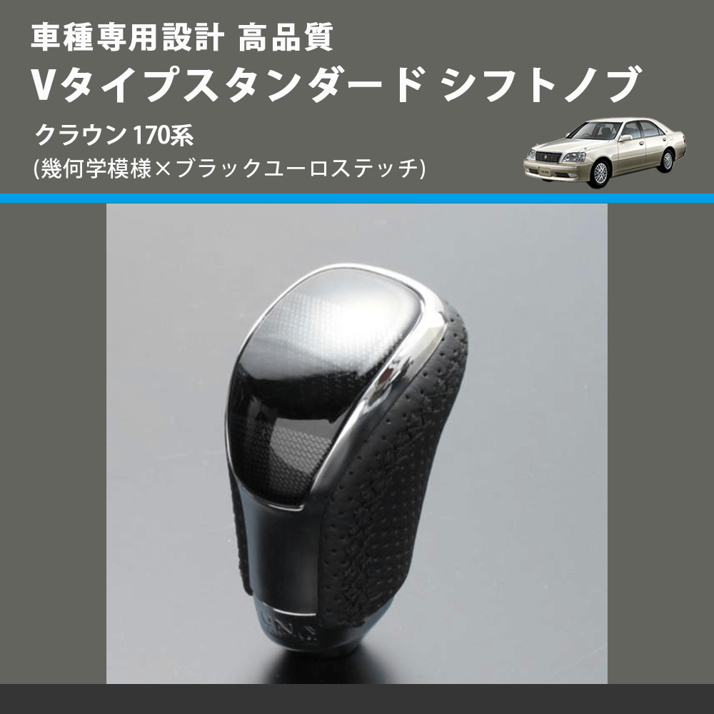 (幾何学模様×ブラックユーロステッチ) Vタイプスタンダード シフトノブ クラウン 170系 FEGGARI STV245EBK-023
