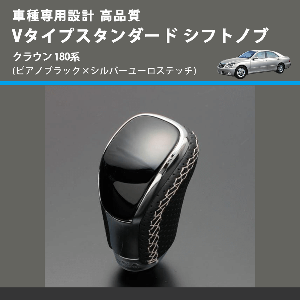 (ピアノブラック×シルバーユーロステッチ) Vタイプスタンダード シフトノブ クラウン 180系 FEGGARI STV126ESI-024