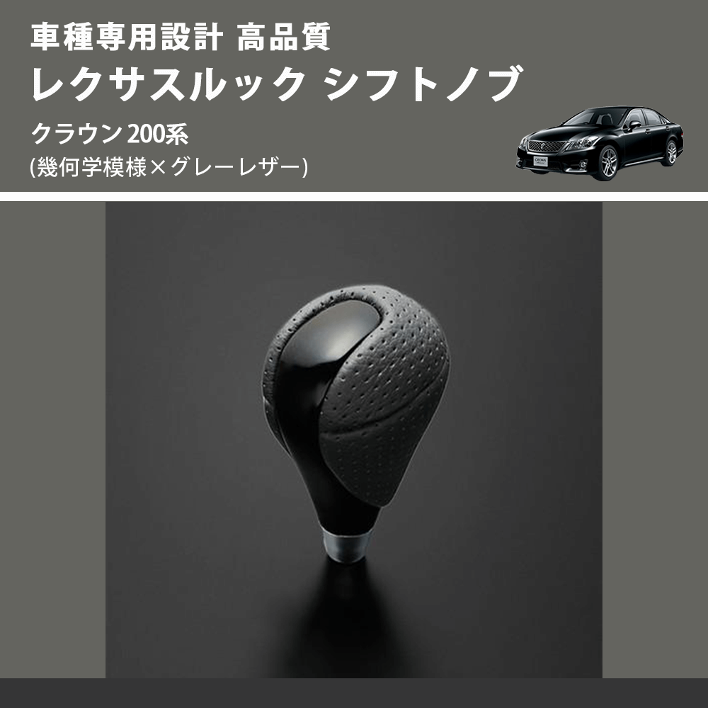 (幾何学模様×グレーレザー) レクサスルック シフトノブ クラウン 200系 FEGGARI SLT-LX01-013
