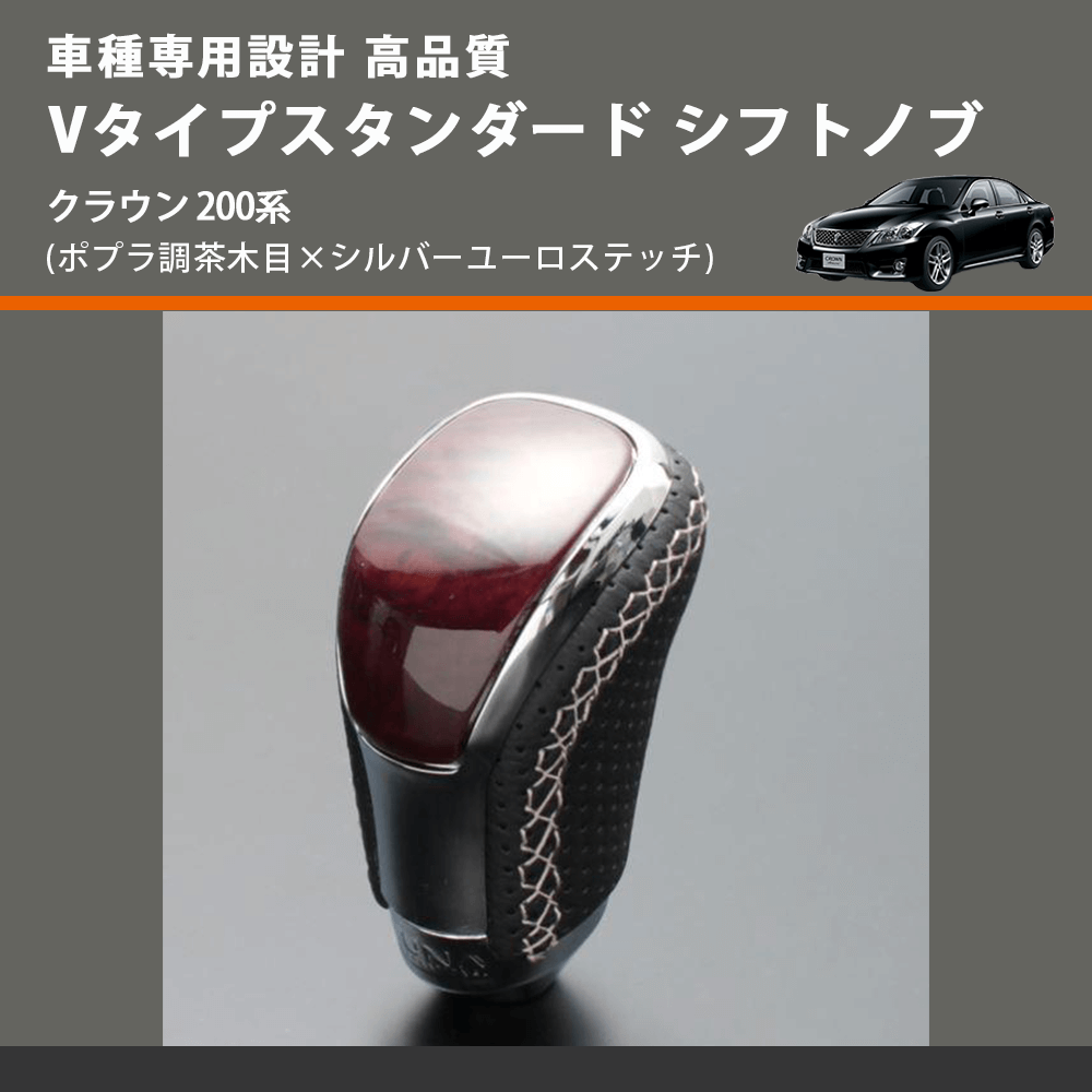 (ポプラ調茶木目×シルバーユーロステッチ) Vタイプスタンダード シフトノブ クラウン 200系 FEGGARI STV177ESI-025
