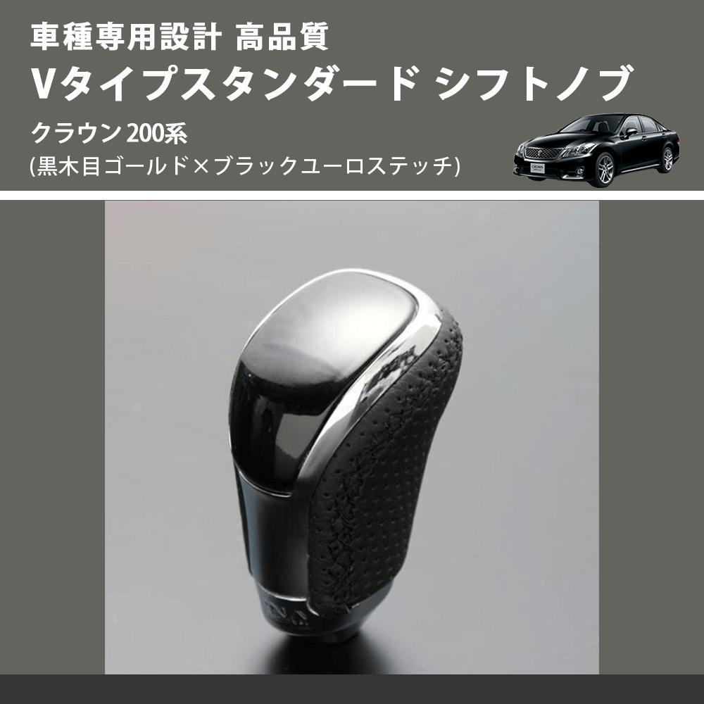 (黒木目ゴールド×ブラックユーロステッチ) Vタイプスタンダード シフトノブ クラウン 200系 FEGGARI STV152EBK-025