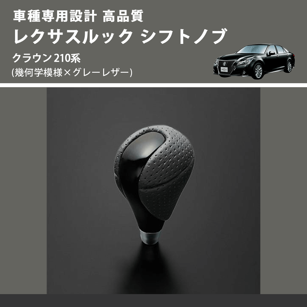 (幾何学模様×グレーレザー) レクサスルック シフトノブ クラウン 210系 FEGGARI SLT-LX01-014