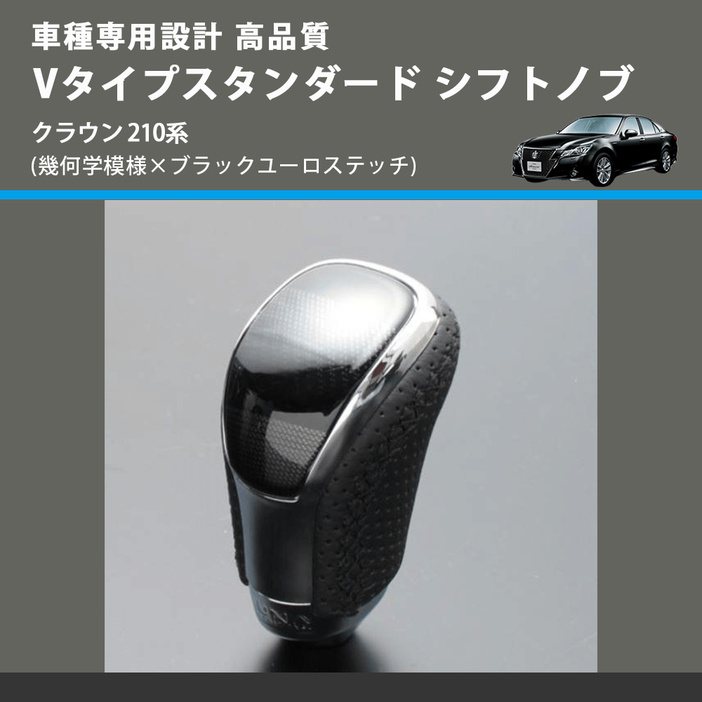 (幾何学模様×ブラックユーロステッチ) Vタイプスタンダード シフトノブ クラウン 210系 FEGGARI STV245EBK-026