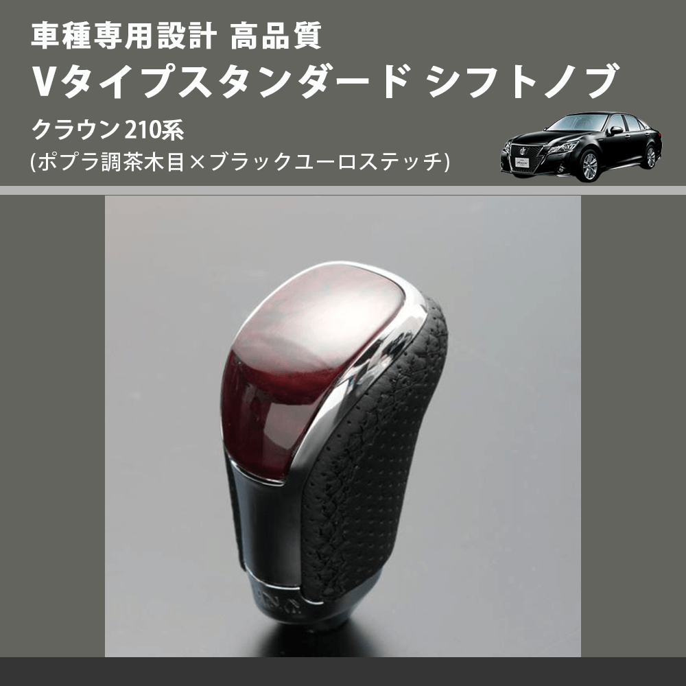 (ポプラ調茶木目×ブラックユーロステッチ) Vタイプスタンダード シフトノブ クラウン 210系 FEGGARI STV177EBK-026