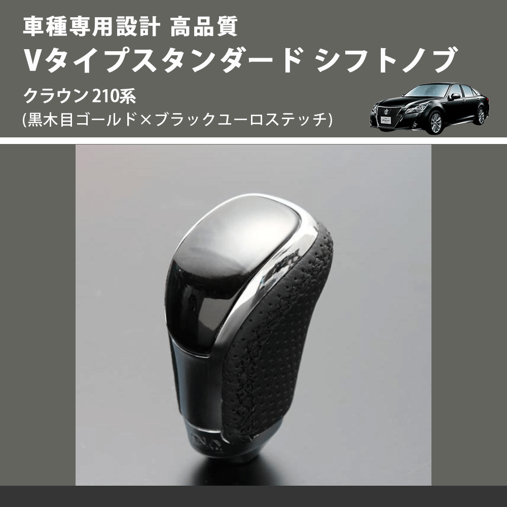 (黒木目ゴールド×ブラックユーロステッチ) Vタイプスタンダード シフトノブ クラウン 210系 FEGGARI STV152EBK-026