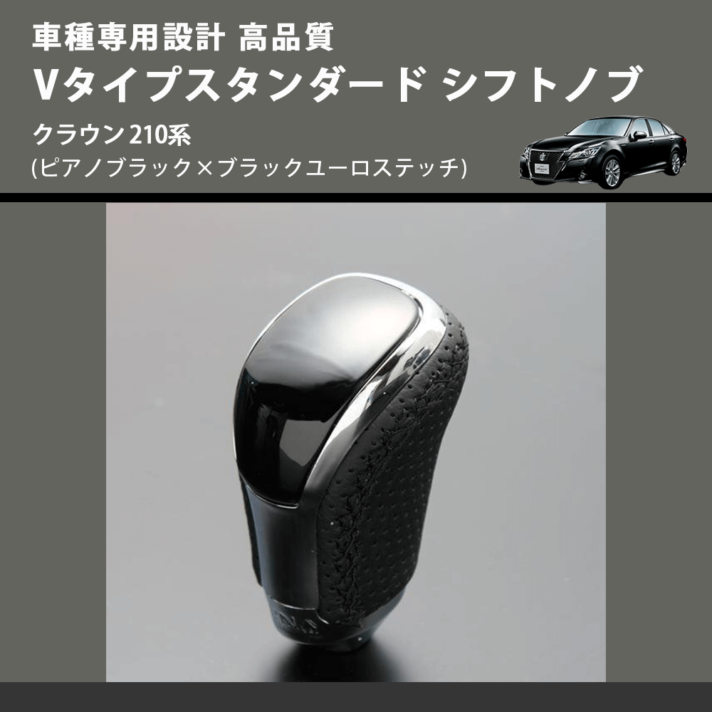 (ピアノブラック×ブラックユーロステッチ) Vタイプスタンダード シフトノブ クラウン 210系 FEGGARI STV126EBK-026