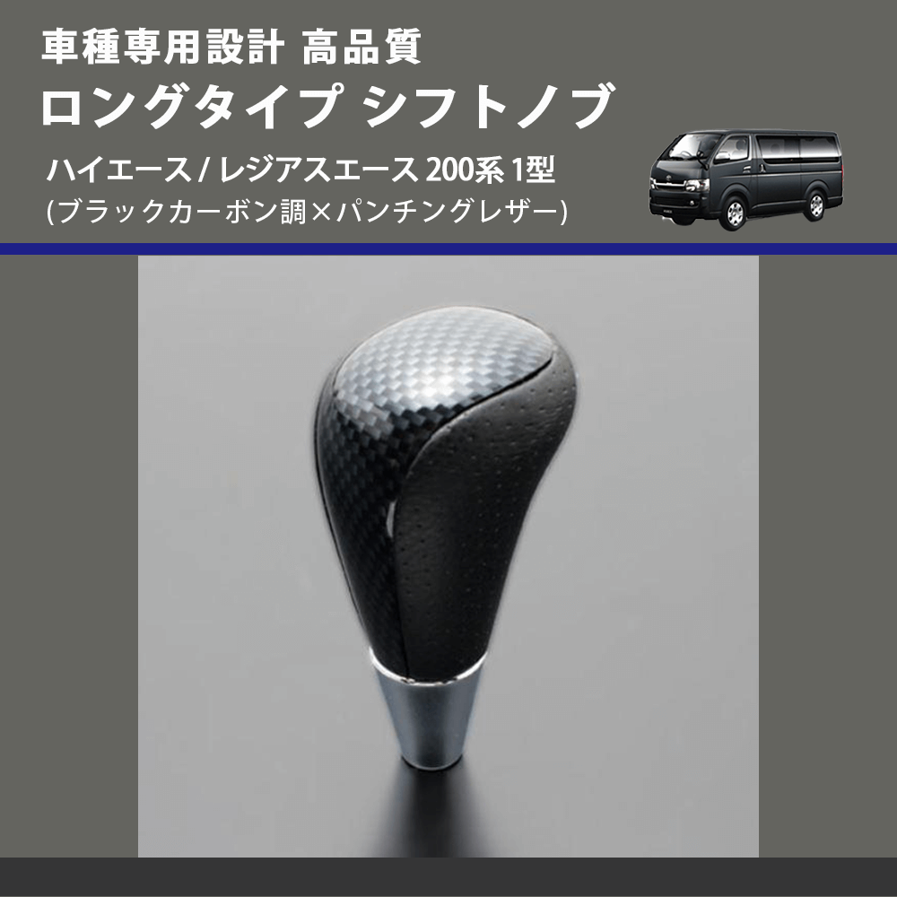 (ブラックカーボン調×パンチングレザー) ロングタイプ シフトノブ ハイエース / レジアスエース 200系 1型 FEGGARI SLT24C-034-006