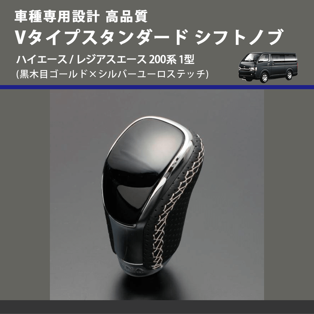 (黒木目ゴールド×シルバーユーロステッチ) Vタイプスタンダード シフトノブ ハイエース / レジアスエース 200系 1型 FEGGARI STV152ESI-003