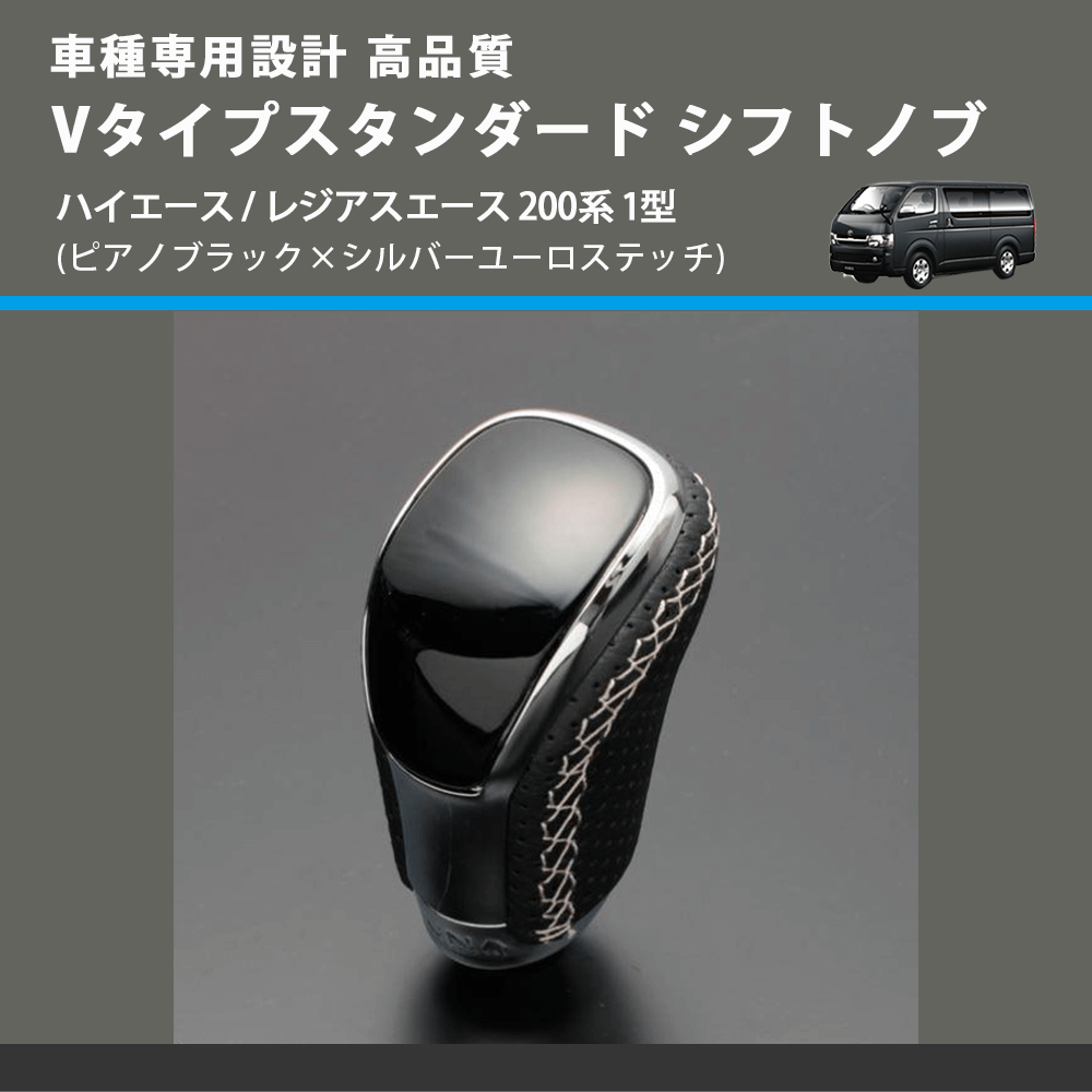 (ピアノブラック×シルバーユーロステッチ) Vタイプスタンダード シフトノブ ハイエース / レジアスエース 200系 1型 FEGGARI STV126ESI-003