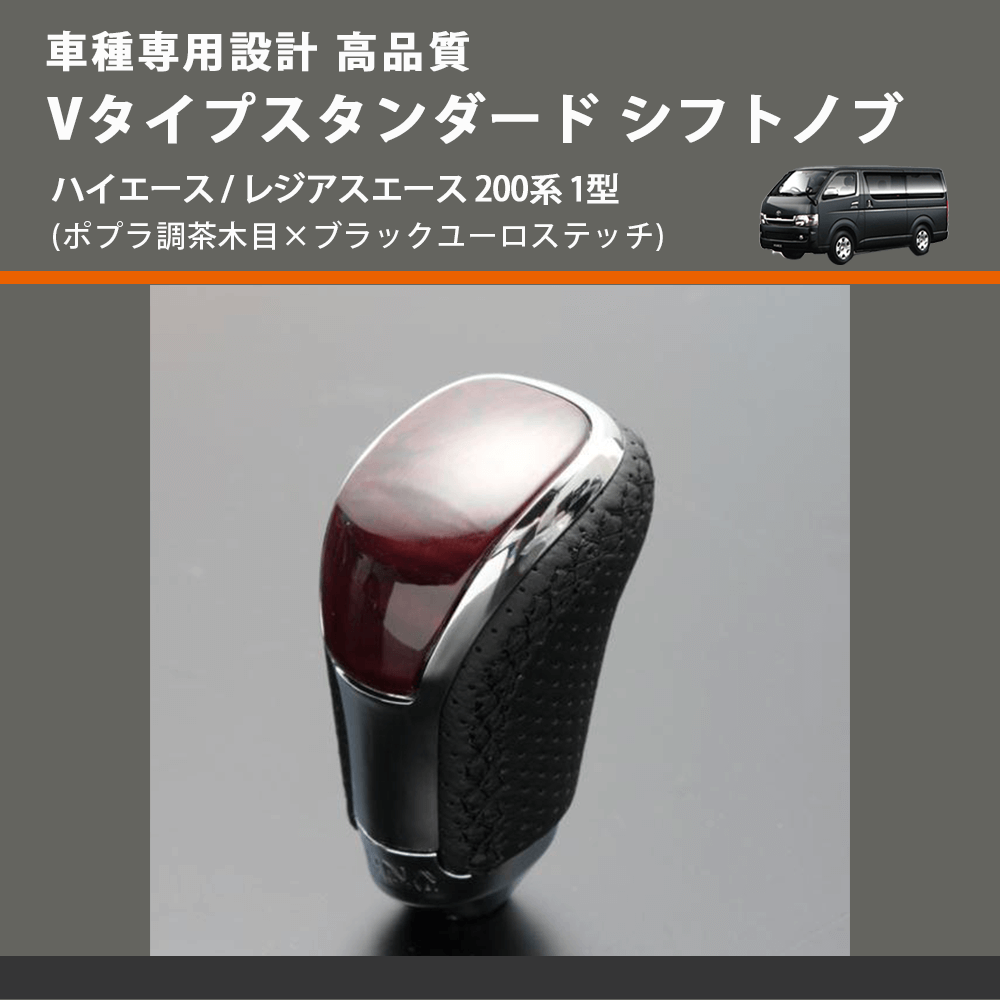 (ポプラ調茶木目×ブラックユーロステッチ) Vタイプスタンダード シフトノブ ハイエース / レジアスエース 200系 1型 FEGGARI STV177EBK-003