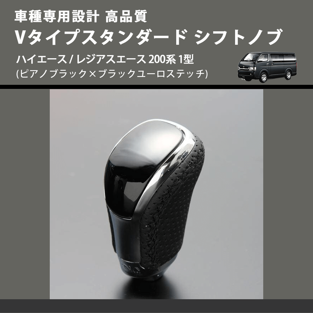 (ピアノブラック×ブラックユーロステッチ) Vタイプスタンダード シフトノブ ハイエース / レジアスエース 200系 1型 FEGGARI STV126EBK-003