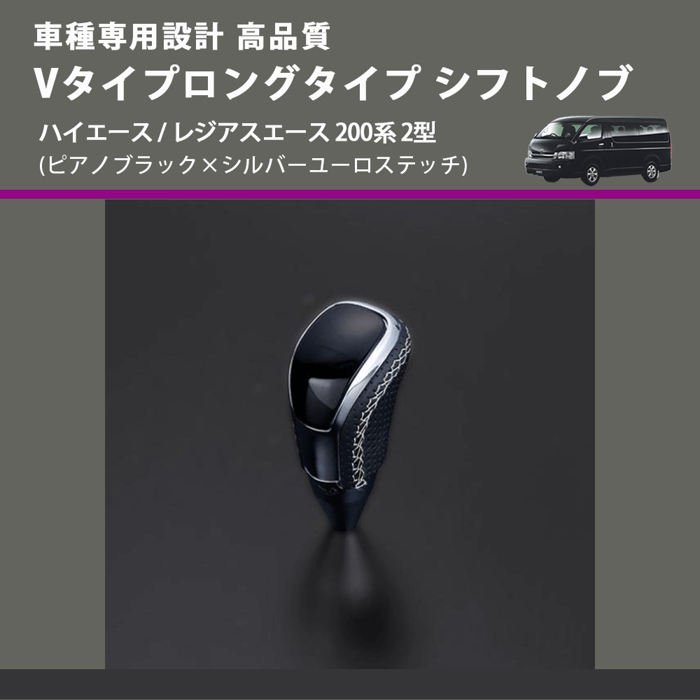 (ピアノブラック×シルバーユーロステッチ) Vタイプロングタイプ シフトノブ ハイエース / レジアスエース 200系 2型 FEGGARI STV126ESIL-003