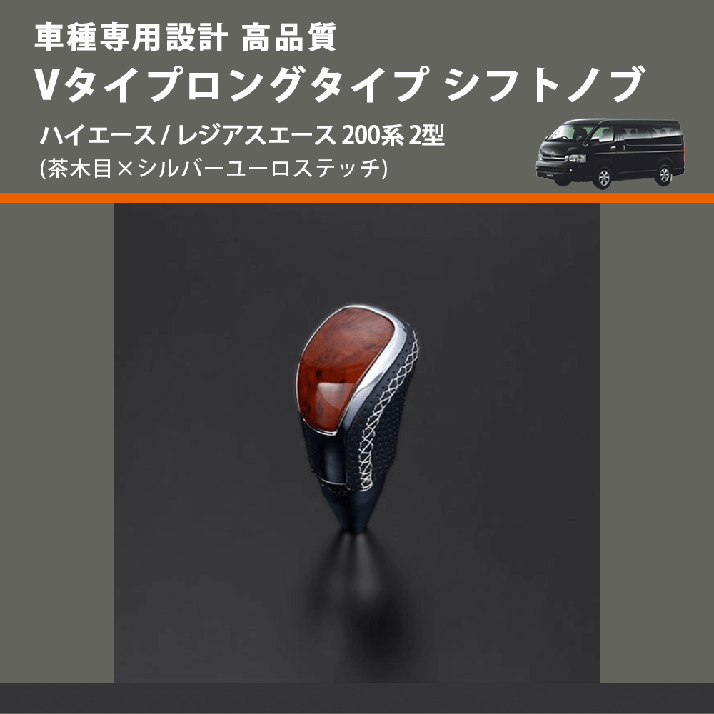 (茶木目×シルバーユーロステッチ) Vタイプロングタイプ シフトノブ ハイエース / レジアスエース 200系 2型 FEGGARI STV110ESIL-003