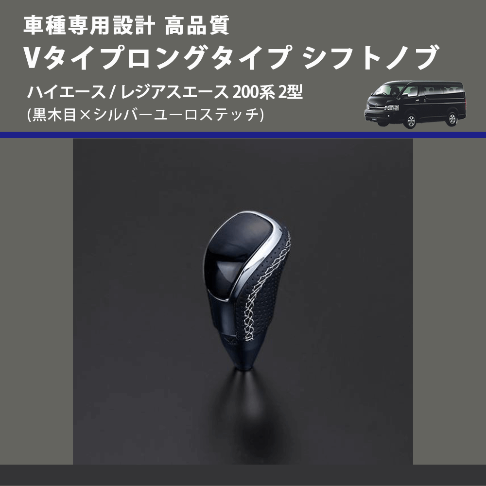 (黒木目×シルバーユーロステッチ) Vタイプロングタイプ シフトノブ ハイエース / レジアスエース 200系 2型 FEGGARI STV101ESIL-003